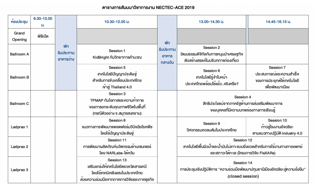 NECTEC-ACE 2019 จัดขึ้นในวันที่ 9 กันยายน 2562
