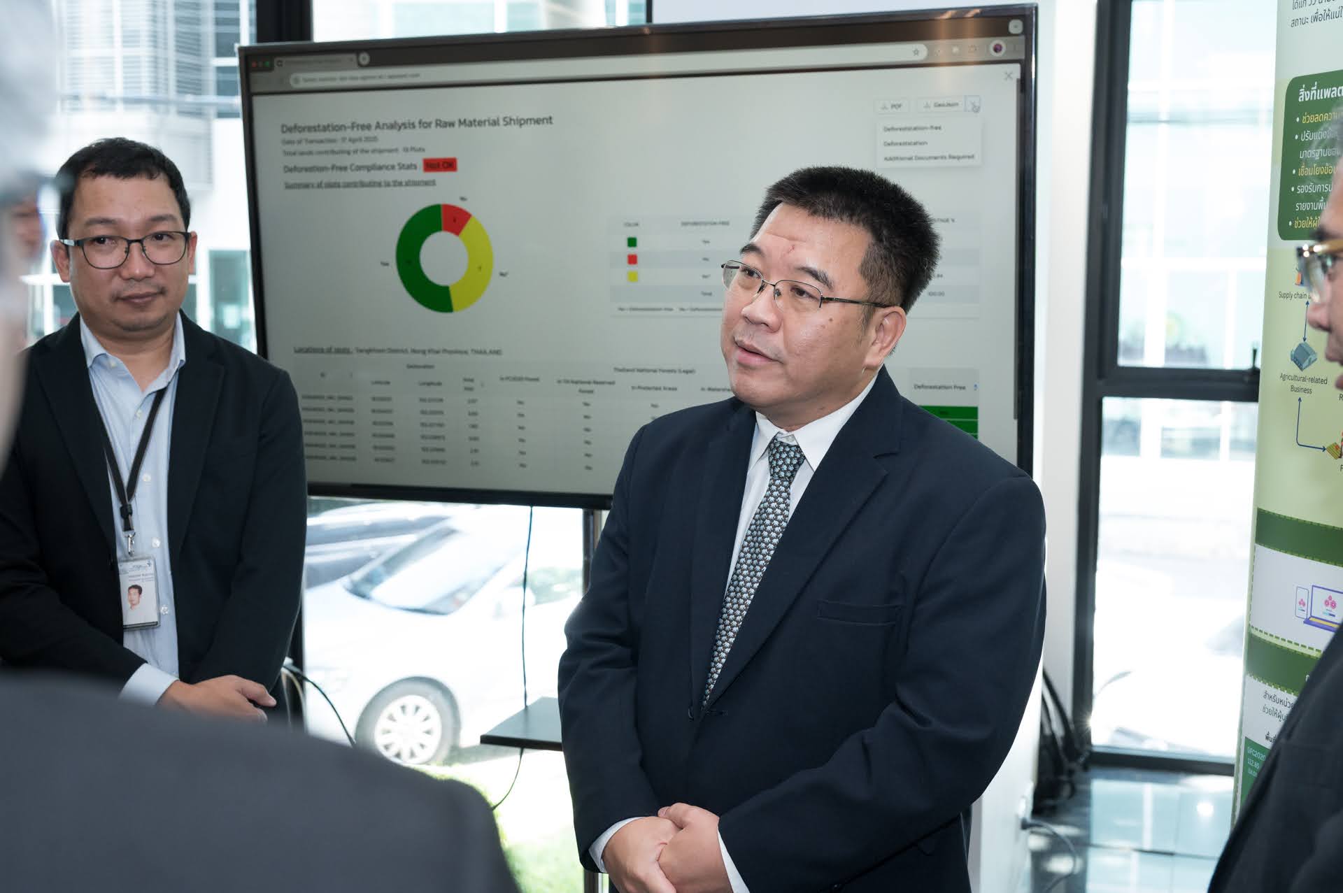 บทบาทภายใต้ MOU นี้ ของ สวทช. โดย เนคเทค ได้นำเทคโนโลยี AI มาประยุกต์ใช้กับการตรวจสอบพิกัดทางภูมิศาสตร์ (Geolocation) ของที่ดินที่ใช้ผลิตสินค้าโภคภัณฑ์ (Commodity) ภายใต้ข้อกำหนดตรวจสอบย้อนกลับ (EUDR traceability requirement) ซึ่งเป็นหลักฐานสำคัญที่จำเป็นต้องแสดงว่าสถานที่นั้นปลอดการทำลายป่า โดยได้พัฒนา แพลตฟอร์มให้บริการตรวจสอบสินค้าที่ปราศจากการทำลายป่า (Deforestation-free Analysis Service Platform) เพื่อตอบสนองต่อกฎระเบียบ EUDR และสนับสนุนการเติบโตทางเศรษฐกิจอย่างยั่งยืน และ เอ็มเทค สวทช. ได้มาช่วยขับเคลื่อนการขยายผลแพลตฟอร์มสู่การใช้งานจริงโดยผู้ประกอบการในเครือข่าย ซึ่งการพัฒนาแพลตฟอร์มดังกล่าวนี้ จะไม่เกิดขึ้น และไม่สัมฤทธิ์ผล หากขาดพันธมิตรหลัก คือ สคทช.