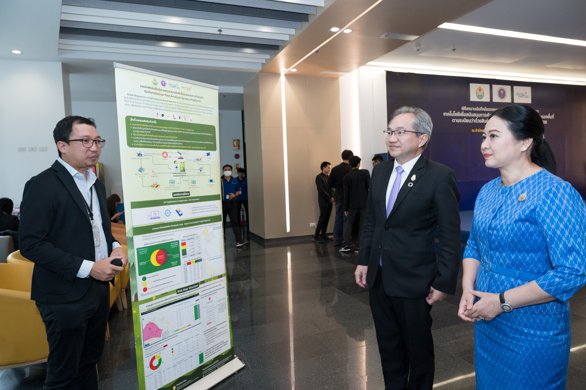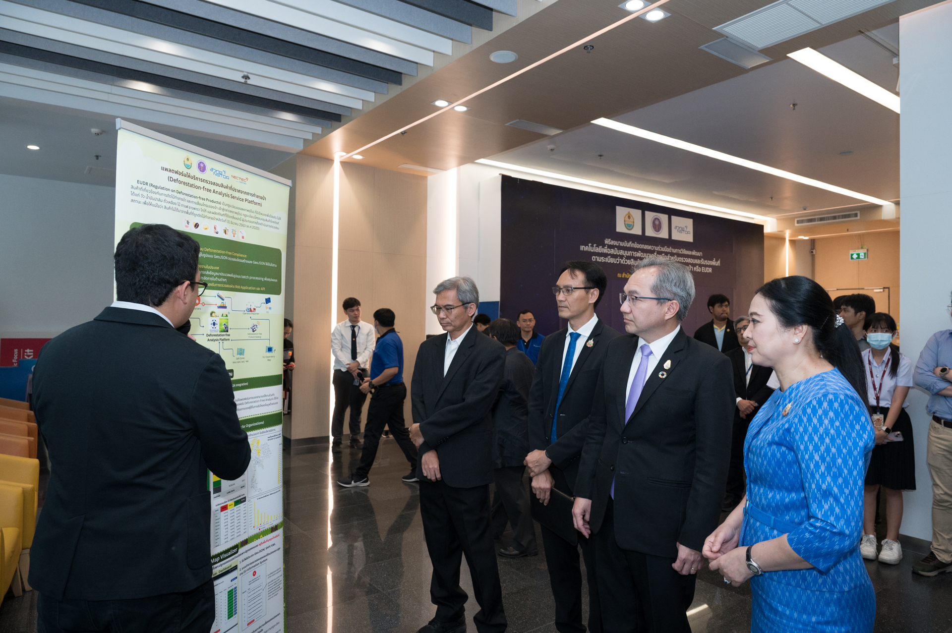 ศาสตราจารย์ ดร.ชูกิจ ลิมปิจำนงค์ ผู้อำนวยการ สวทช. กล่าวว่า ความร่วมมือในครั้งนี้ สะท้อนให้เห็นถึงความมุ่งมั่นของทั้งสองหน่วยงาน ในการนำเอาความรู้ ความสามารถ และทรัพยากรที่มีอยู่มาบูรณาการร่วมกัน เพื่อช่วยเหลือและสร้างความสามารถในการแข่งขันของผู้มีส่วนได้ส่วนเสียในห่วงโซ่อุปทานของสินค้าโภคภัณฑ์ (Commodity) สำหรับการตรวจสอบแหล่งกำเนิดสินค้าโภคภัณฑ์ที่ปราศจากการทำลายป่า ตามกฎระเบียบ EUDR
