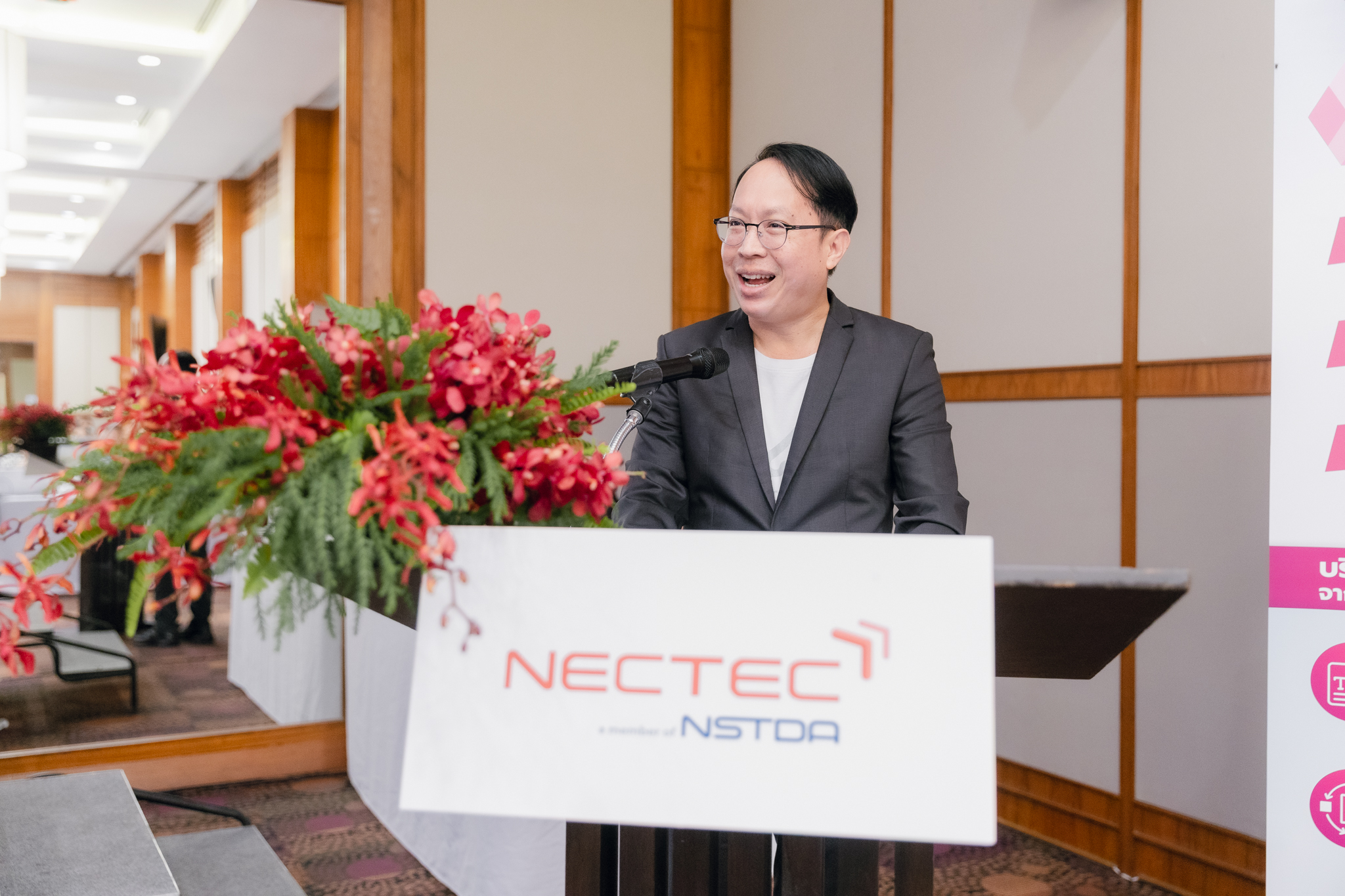 ดร.ศวิต กาสุริยะ รองผู้อำนวยการ เนคเทค สวทช. ประธานในพิธีเปิดการอบรมฯ กล่าวว่า กิจกรรมการอบรมนี้ เป็นระยะนำร่องของโครงการฝึกอบรมสร้างความตระหนักรู้การใช้ปัญญาประดิษฐ์ในการเรียนการสอนระดับอุดมศึกษา ประจำปี 2568 ที่กระทรวงอว. มีความตั้งใจจัดกิจกรรมใน 5 ภูมิภาคทั่วประเทศ เพื่อสร้างแรงบันดาลใจ เปิดโอกาสให้อาจารย์ทุกคณะ ทุกสาขาวิชา ได้มาเรียนรู้จากตัวอย่างการดำเนินงานจริง ได้ทดลอง ปรับใช้ และแลกเปลี่ยนแนวคิดร่วมกัน ในการนำเครื่องมือ AI มาต่อยอดเป็นผู้ช่วยออกแบบการเรียนการสอนได้อย่างเหมาะสม โดยเน้นย้ำว่าเมื่ออาจารย์เริ่มเข้าใจถึงบทบาทและความประโยชน์ของ AI ในมิติต่างๆ ขั้นต่อไปคือการใช้ AI อย่างมีเป้าหมาย เพื่อการยกระดับคุณภาพการเรียนรู้ให้แก่นักศึกษาได้อย่างมีประสิทธิภาพ และสอดคล้องกับบริบทของการเรียนการสอนในมหาวิทยาลัย นอกจากนั้น การอบรมในครั้งนี้ไม่ได้มุ่งหวังเพียงการถ่ายทอดความรู้ด้านเทคโนโลยี AI เท่านั้น แต่ให้ความสำคัญกับการสร้างเครือข่ายอาจารย์ผู้ใช้ AI ในระดับอุดมศึกษา เพื่อเป็นพื้นที่แลกเปลี่ยนประสบการณ์ แนวปฏิบัติที่ดี และการพัฒนาแนวทางการใช้ AI ทางการศึกษาอย่างต่อเนื่องและยั่งยืน