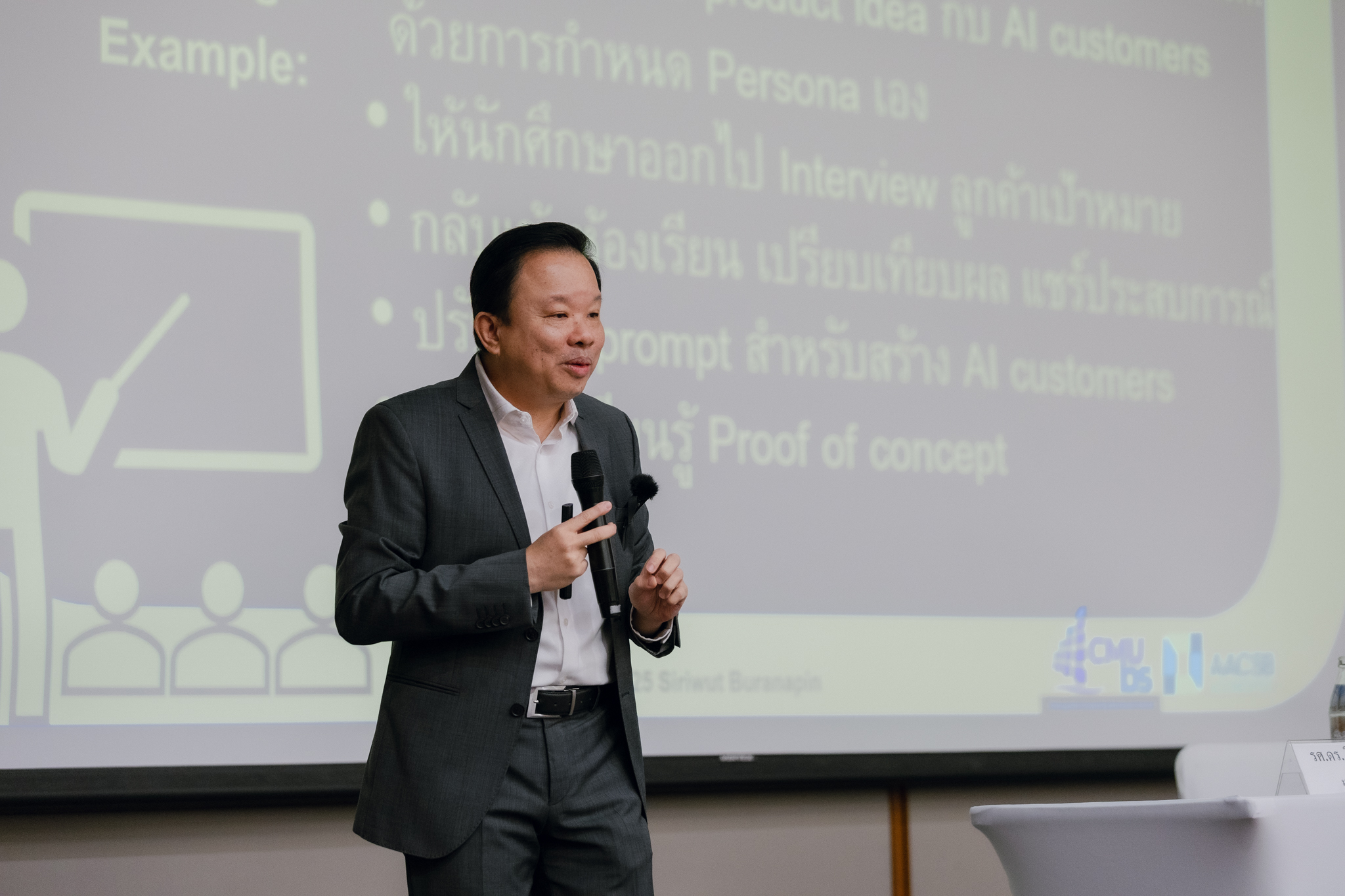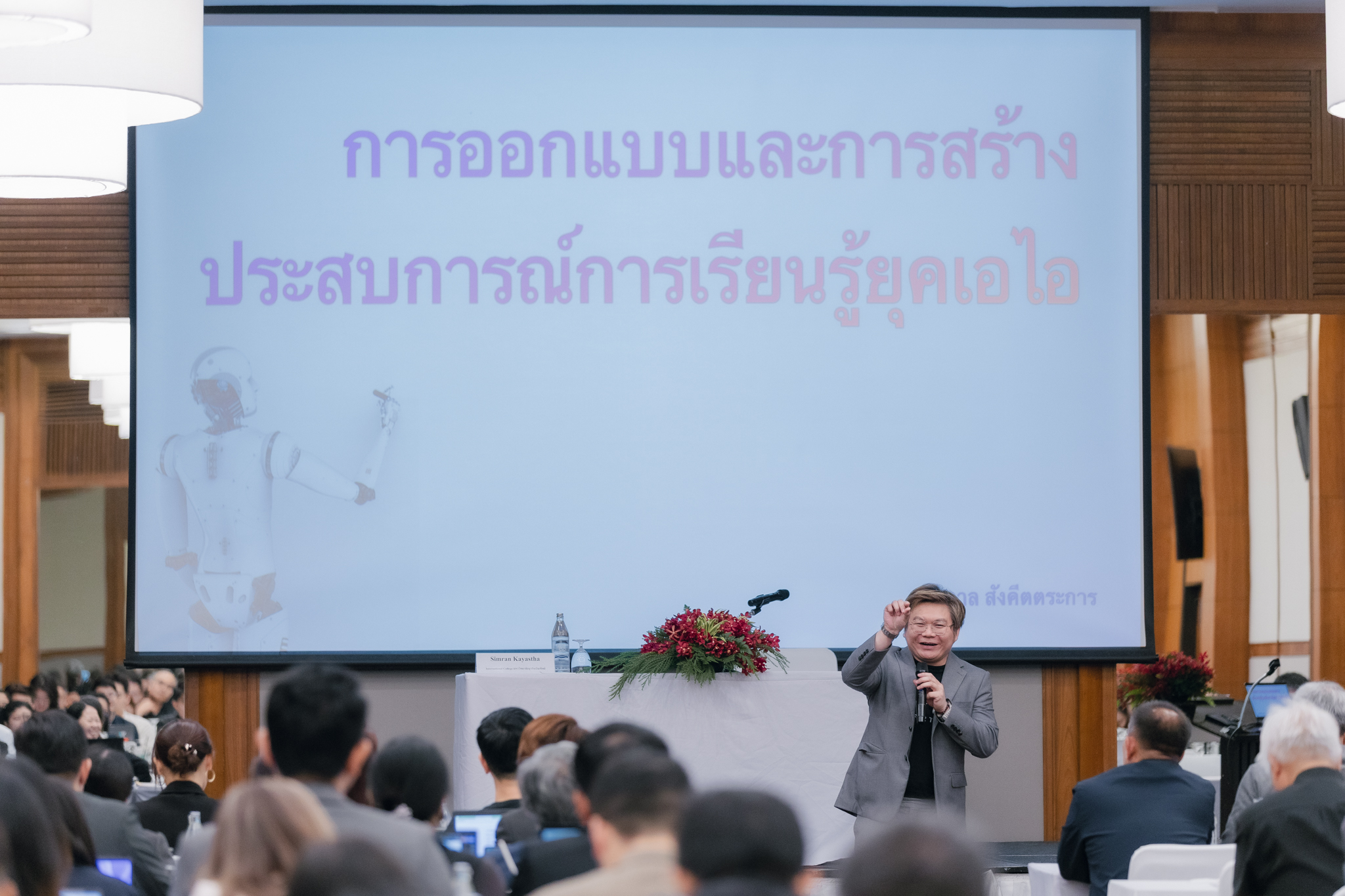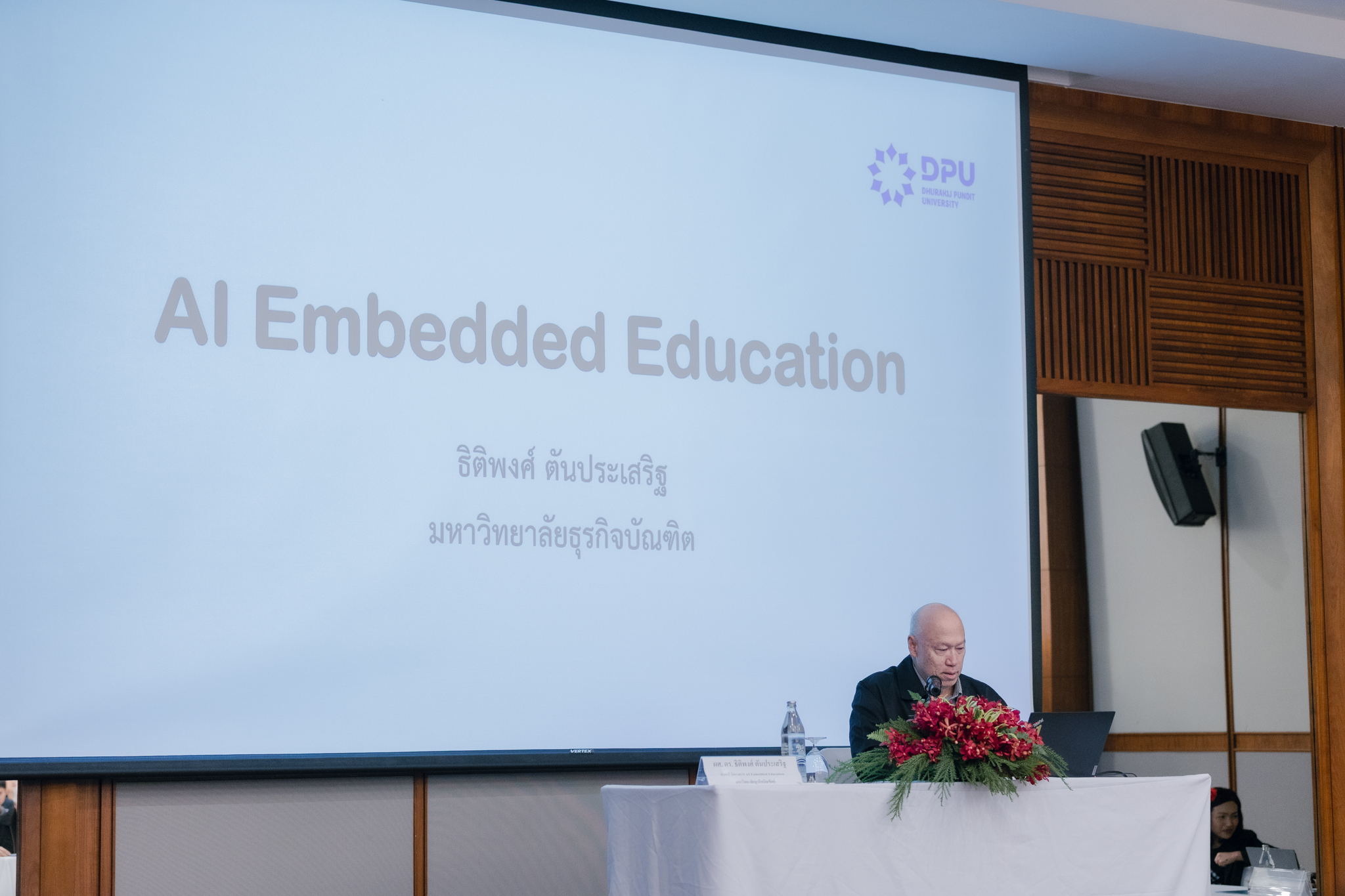 - การบรรยายในหัวข้อ “AI Embedded Education” แนวคิด/ แนวทางการเรียนการสอนยุคปัจจุบัน (Active Learning) และข้อควรระวังในการใช้ปัญญาประดิษฐ์ในการเรียนการสอน