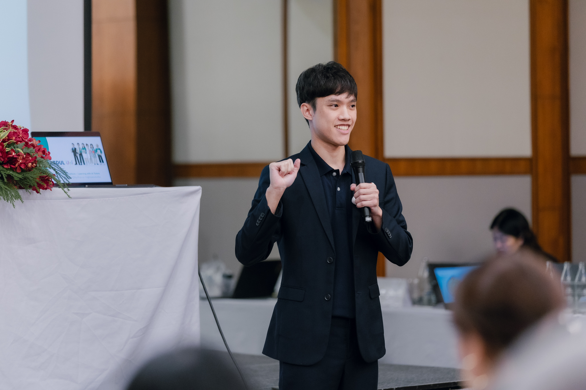 โดย ผู้ช่วยศาสตราจารย์ ดร. ธิติพงศ์ ตันประเสริฐ หัวหน้าโครงการ AI Embedded Education มหาวิทยาลัยธุรกิจบัณฑิตย์ - นำเสนอตัวอย่างประยุกต์ใช้ AI ในสาขาการขนส่งและโลจิสติกส์ หัวข้อ’AI Teaching Assistance Bot’