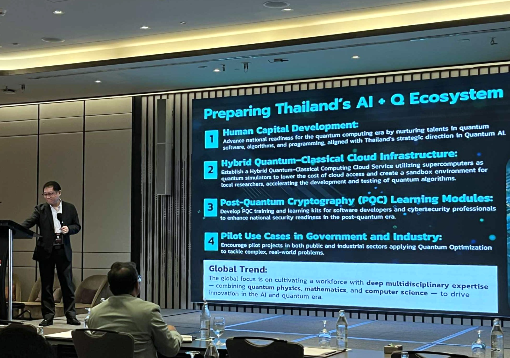 แนวโน้มในระดับโลกกำลังให้ความสำคัญกับการพัฒนาทรัพยากรมนุษย์ที่มีความเชี่ยวชาญเชิงลึกในหลากหลายสาขา โดยเฉพาะในด้านฟิสิกส์ควอนตัม, คณิตศาสตร์, และวิทยาการคอมพิวเตอร์ โดยแนวทางที่ประเทศไทยควรส่งเสริม เพื่อสร้างระบบนิเวศของการพัฒนาเทคโนโลยี AI + Q ได้แก่