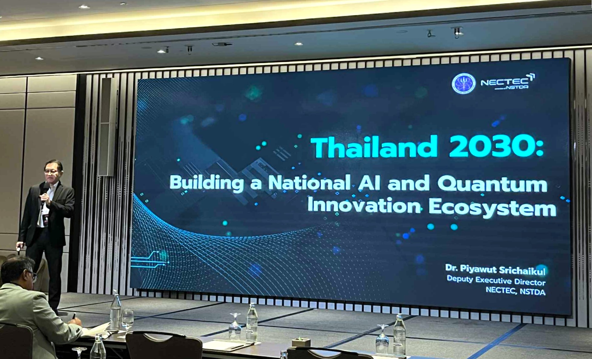 ในโอกาสนี้ ดร.ปิยวุฒิ ศรีชัยกุล รองผู้อำนวยการ เนคเทค สวทช. ได้ร่วมบรรยายพิเศษในหัวข้อ “Thailand 2030: Building a National AI and Quantum Innovation System” โดยสะท้อนมุมมองแนวคิด ความพร้อมในมิติต่างๆ รวมถึงการส่งเสริมระบบนิเวศเพื่อผลักดันการพัฒนา AI + Quantum Computing ของประเทศไทย