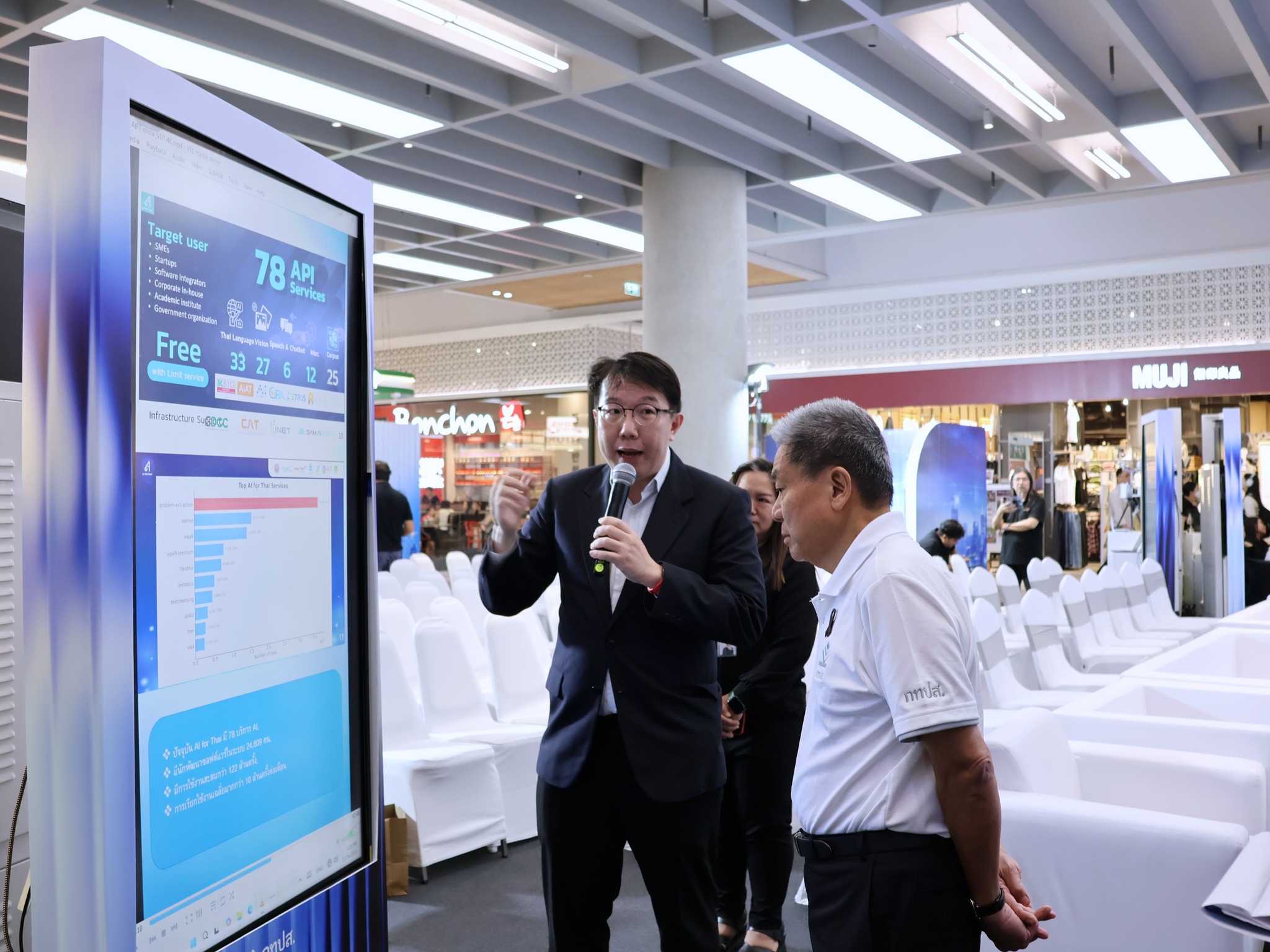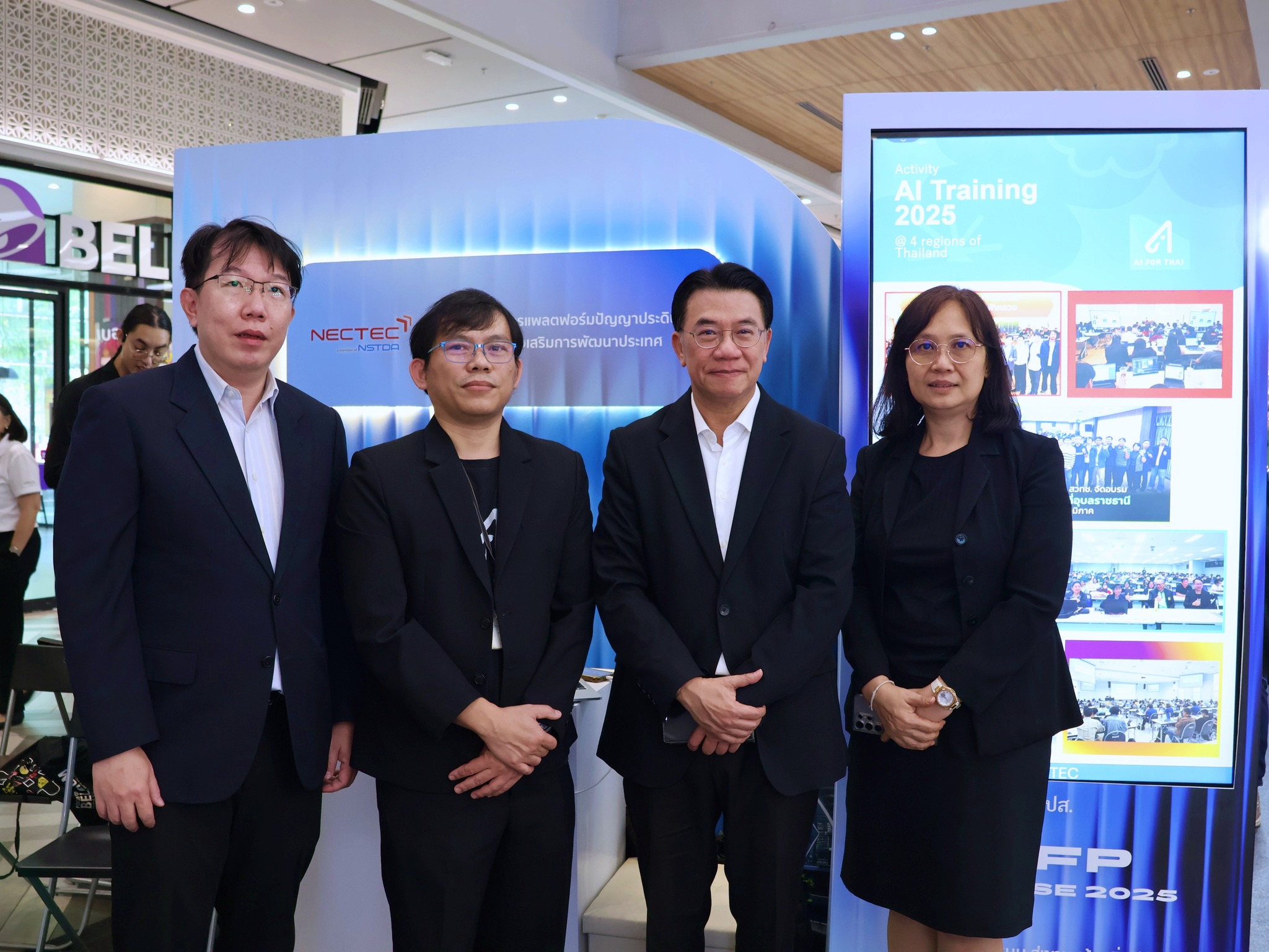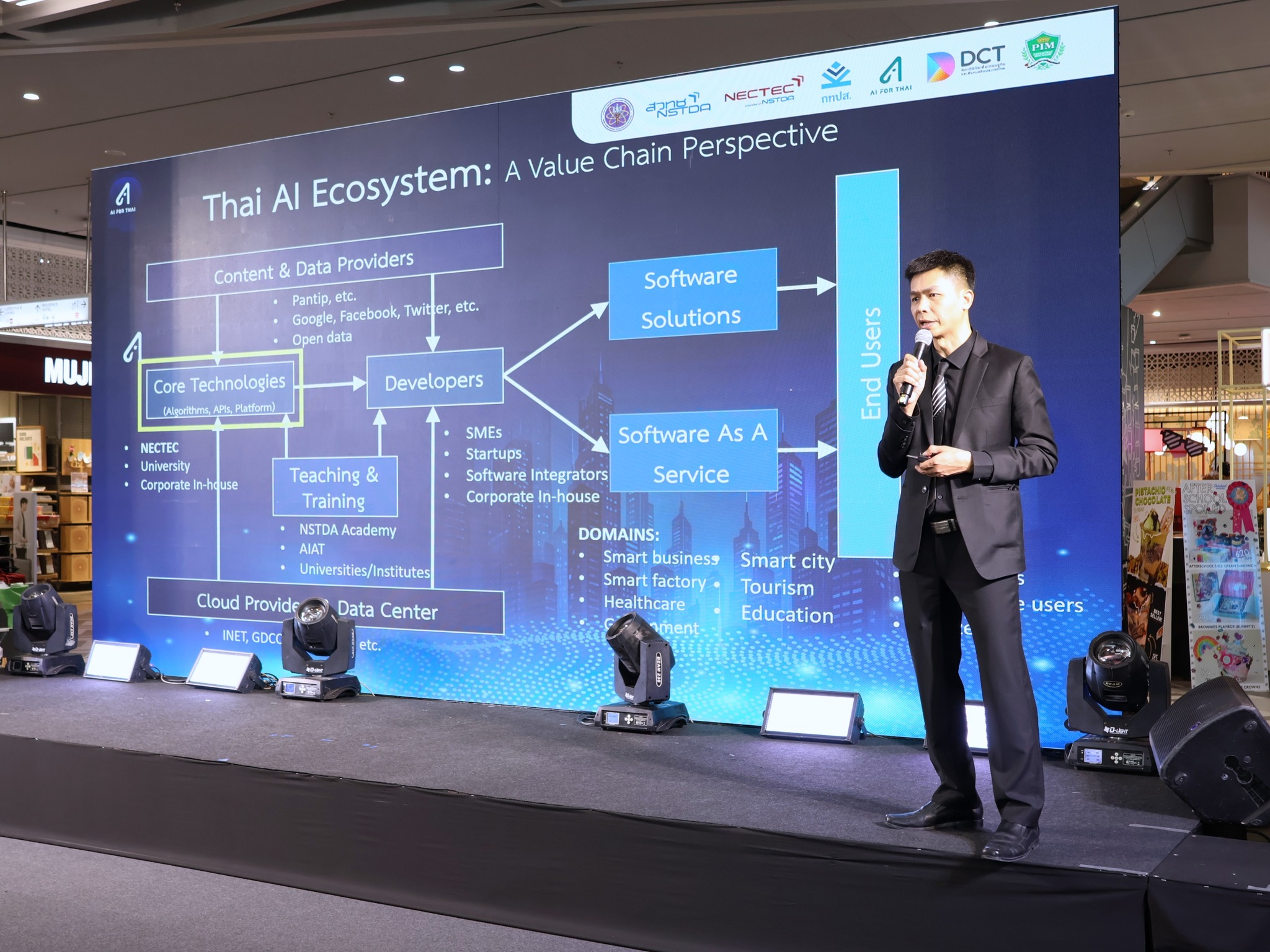 โครงการให้บริการแพลตฟอร์มปัญญาประดิษฐ์อย่างยั่งยืนเพื่อส่งเสริมการพัฒนาประเทศ AI For Thai Platform คือแพลตฟอร์มให้บริการเทคโนโลยีปัญญาประดิษฐ์ภายใต้แนวคิด “AI สัญชาติไทย” เพื่อรองรับความต้องการใช้งาน AI ที่เหมาะกับบริบทประเทศไทย นำเสนอบริการ AI APIs แบบ Pre-trained Model พร้อมใช้งาน ครอบคลุมทั้งผลงานจากนักวิจัยเนคเทค และผลงานจากภาคเอกชนที่ต้องการสร้างสังคมแห่งการแบ่งปันองค์ความรู้และบริการระดับอุตสาหกรรม แพลตฟอร์มรองรับเทคโนโลยีหลักด้าน Natural Language Processing (NLP), Image Processing, Speech Processing ซึ่งเป็นพื้นฐานสำคัญในการพัฒนาโซลูชัน AI สำหรับการใช้งานจริงในภาคอุตสาหกรรม ผู้ประกอบการสามารถเลือกใช้บริการเพื่อทดลองโมเดล AI และต่อยอดสู่ธุรกิจได้ทันทีโดยไม่ต้องเริ่มต้นใหม่ จุดเด่น / ประโยชน์ของเทคโนโลยี 1) นักพัฒนาสามารถใช้งานบริการบางส่วนได้ฟรี (Free with limit) เพื่อทำ Proof of Concept 2) ลดต้นทุนด้านทรัพยากร AI ไม่ต้องลงทุนโครงสร้างพื้นฐานเอง (GPU/CPU) 3) มีบริการและทีมสนับสนุน ช่วยให้นักเรียน นักศึกษา SME และผู้ประกอบการไทยเข้าถึงเทคโนโลยี AI ได้ง่ายขึ้น