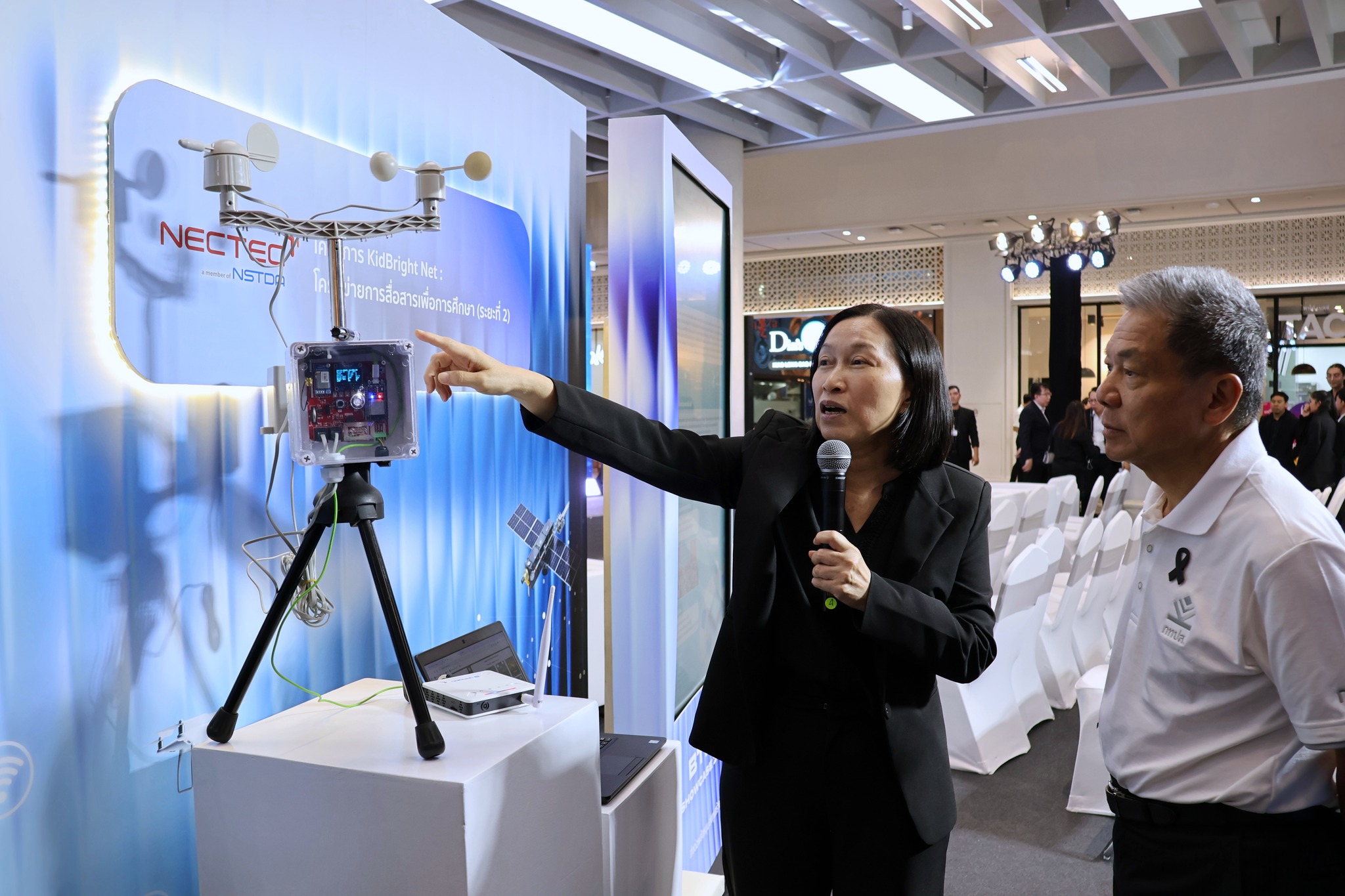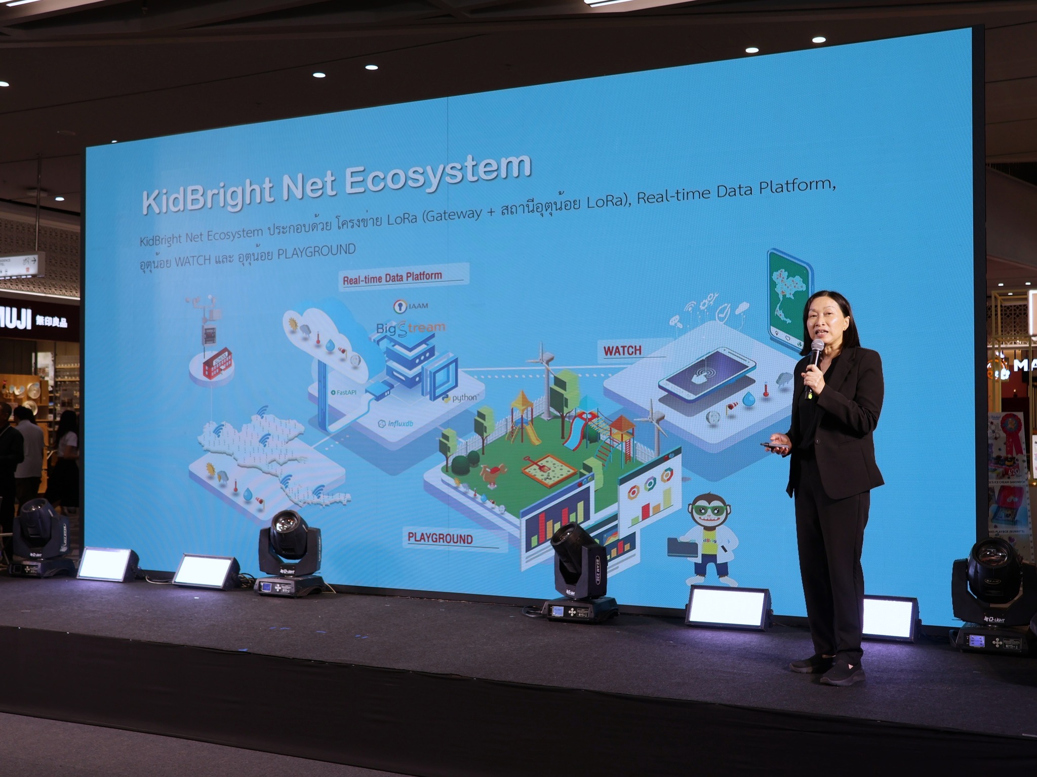 โครงการ KidBright Net: โครงข่ายการสื่อสารเพื่อการศึกษา (ระยะที่ 2) KidBright Net โครงข่ายการสื่อสารเพื่อการศึกษา ที่พัฒนาขึ้นเพื่อสร้างองค์ความรู้ด้านการส่งข้อมูล การแลกเปลี่ยนข้อมูล และการวิเคราะห์ข้อมูลดิจิทัลให้แก่โรงเรียนทั่วประเทศ ช่วยส่งเสริมการเรียนรู้ด้านวิทยาการข้อมูล พร้อมเปิดโอกาสให้โรงเรียนแลกเปลี่ยนข้อมูลและองค์ความรู้ร่วมกัน เกิดเป็น Education Community ที่เรียนรู้และเติบโตไปพร้อมกัน ระบบประกอบด้วย KidBright Net Gateway และ สถานีอุตุน้อย LoRa ที่เชื่อมต่อกันผ่านเทคโนโลยีสื่อสารไร้สาย LoRa (Long Range Network) ซึ่งรองรับการประยุกต์ใช้งานด้าน IoT ได้อย่างมีประสิทธิภาพ จุดเด่น / ประโยชน์ของเทคโนโลยี 1) เป็นเครื่องมือการเรียนรู้ด้านเทคโนโลยีดิจิทัลครบวงจร ครอบคลุมโครงข่ายไร้สาย IoT วิทยาการข้อมูล และระบบสมองกลฝังตัว 2) ดูแลง่าย ค่าใช้จ่ายต่ำ และไม่ต้องเสียค่าบริการส่งข้อมูลผ่านเครือข่ายเชิงพาณิชย์ กลุ่มผู้ใช้งาน นักเรียนระดับมัธยมศึกษาทั่วประเทศ และโรงเรียนที่จัดการเรียนการสอนในระดับมัธยมศึกษา