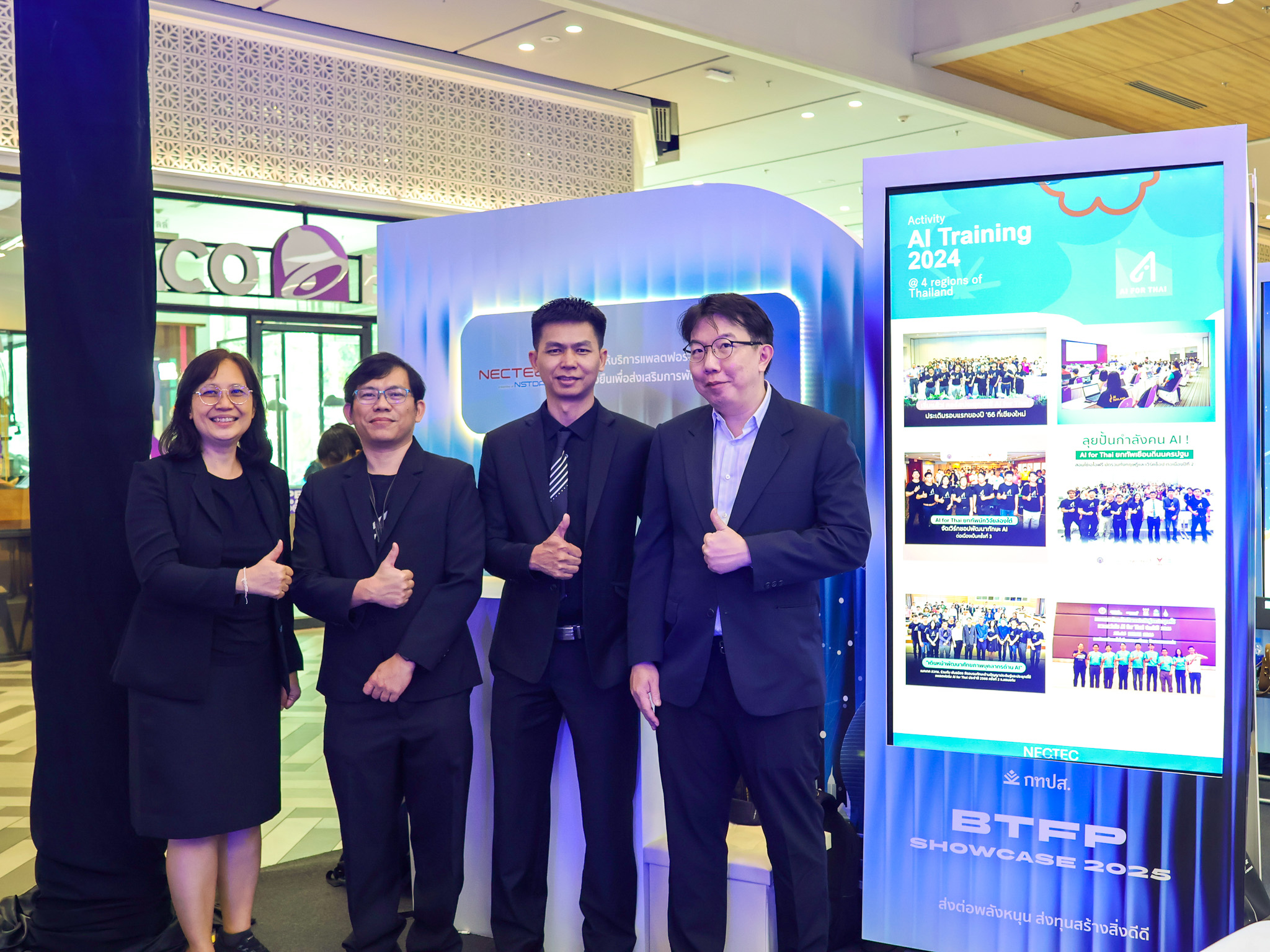 14 พฤศจิกายน 2568 ดร.ชัย วุฒิวิวัฒน์ชัย ผู้อำนวยการเนคเทค สวทช. ในฐานะกรรมการบริหารกองทุน กทปส. พร้อมด้วยทีมวิจัยร่วมแสดงผลงานในงาน BTFP Showcase 2025 จัดโดยกองทุนวิจัยและพัฒนากิจการกระจายเสียง กิจการโทรทัศน์ และกิจการโทรคมนาคม เพื่อประโยชน์สาธารณะ (กทปส.) โชว์ 8 โครงการเด่น ด้านเทคโนโลยี-วิจัย ที่ได้นำผลงานจากโครงการที่ได้รับทุนสนับสนุนจาก กทปส. มาจัดแสดงนวัตกรรมจากงานวิจัยและพัฒนาโดยฝีมือคนไทย โดยได้รับเกียรติจาก ศ.คลินิก นพ.สรณ บุญใบชัยพฤกษ์ ประธานกรรมการกระจายเสียง กิจการโทรทัศน์ และกิจการโทรคมนาคมแห่งชาติ และประธานกรรมการบริหารกองทุน กทปส. เป็นประธานเปิดงาน