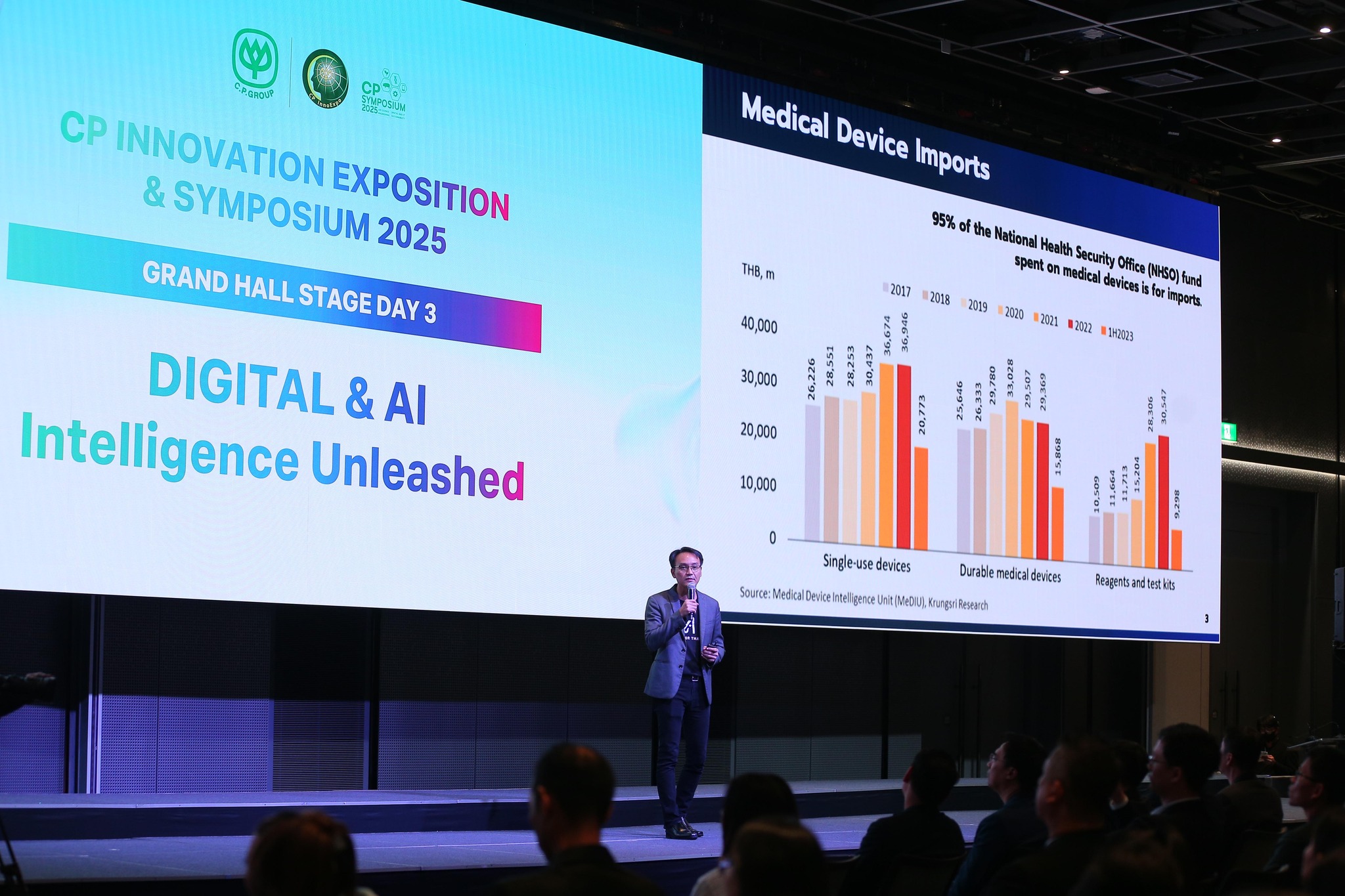 วันที่ 20 กันยายน 2568 ดร.ชัย วุฒิวิวัฒน์ชัย ผู้อำนวยการศูนย์เทคโนโลยีอิเล็กทรอนิกส์และคอมพิวเตอร์แห่งชาติ (เนคเทค สวทช.) ได้เข้าร่วมในงานประชุมวิชาการ “CP Innovation Exposition & Symposium 2025” โดย เครือเจริญโภคภัณฑ์ เวทีแสดงศักยภาพนวัตกรรมแห่งปีที่รวบรวมผู้กำหนดนโยบาย นักวิจัย นักวิชาการ นักธุรกิจ และภาคอุตสาหกรรมในสาขาต่างๆ ทั้งระดับประเทศและระดับโลก มาร่วมแลกเปลี่ยนความรู้ทางวิชาการ ความก้าวหน้าทางเทคโนโลยี รวมถึงการเสริมสร้างเครือข่ายความร่วมมือระหว่างหน่วยงานต่างๆ และหน่วยงานภายในเครือฯ ให้เกิดการผนึกกำลังร่วมกันสร้างสรรค์ผลงานทางวิชาการไปต่อยอดให้เกิดคุณประโยชน์แก่สังคมในวงกว้าง