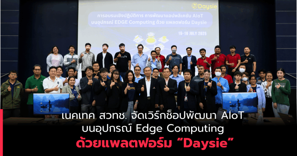 ศูนย์เทคโนโลยีอิเล็กทรอนิกส์และคอมพิวเตอร์แห่งชาติ (เนคเทค) สวทช. จัดอบรมเชิงปฏิบัติการหัวข้อ “Daysie: Bring Your Data, Gain The Edge” ระหว่างวันที่ 15 – 16 กรกฎาคม 2568 ณ ห้องประชุม SD-601 ชั้น 6 อาคารสราญวิทย์ อุทยานวิทยาศาสตร์ประเทศไทย โดยมีเป้าหมายเพื่อเสริมสร้างทักษะให้ผู้เข้าร่วมสามารถพัฒนาแอปพลิเคชัน AIoT บนอุปกรณ์ Edge Computing ได้อย่างง่ายดายและมีประสิทธิภาพด้วยแพลตฟอร์ม “Daysie” ผลงานล่าสุดที่พัฒนาโดยนักวิจัยจากเนคเทค