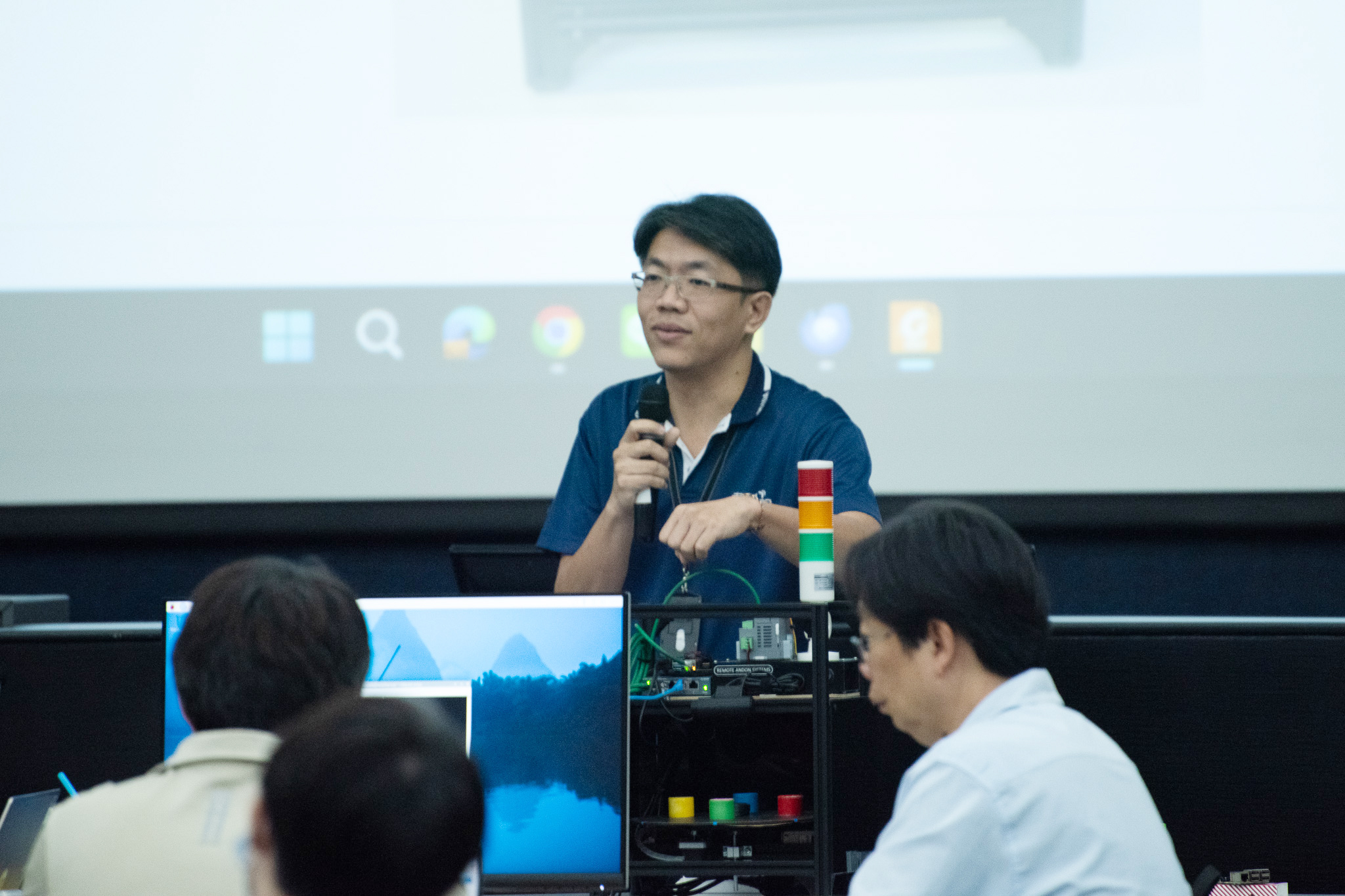 โอกาสนี้คุณอุดม ลิ่วลมไพศาล ผู้อำนวยการกลุ่มวิจัยไอโอทีและระบบอัตโนมัติสำหรับงานอุตสาหกรรม (IIARG) เนคเทค ได้ให้เกียรติกล่าวต้อนรับและชี้แจงวัตถุประสงค์ของการจัดอบรม พร้อมด้วยคุณปัญญาสาร ปริศวงศ์ ประธานกรรมการพิจารณาผลงานโครงการพัฒนาแพลตฟอร์ม Edge Computing เพื่อต่อยอดแพลตฟอร์ม NETPIE IoT จากกองทุนวิจัยและพัฒนากิจการกระจายเสียง กิจการโทรทัศน์ และกิจการโทรคมนาคม เพื่อประโยชน์สาธารณะ (กทปส.) กล่าวเปิดงาน