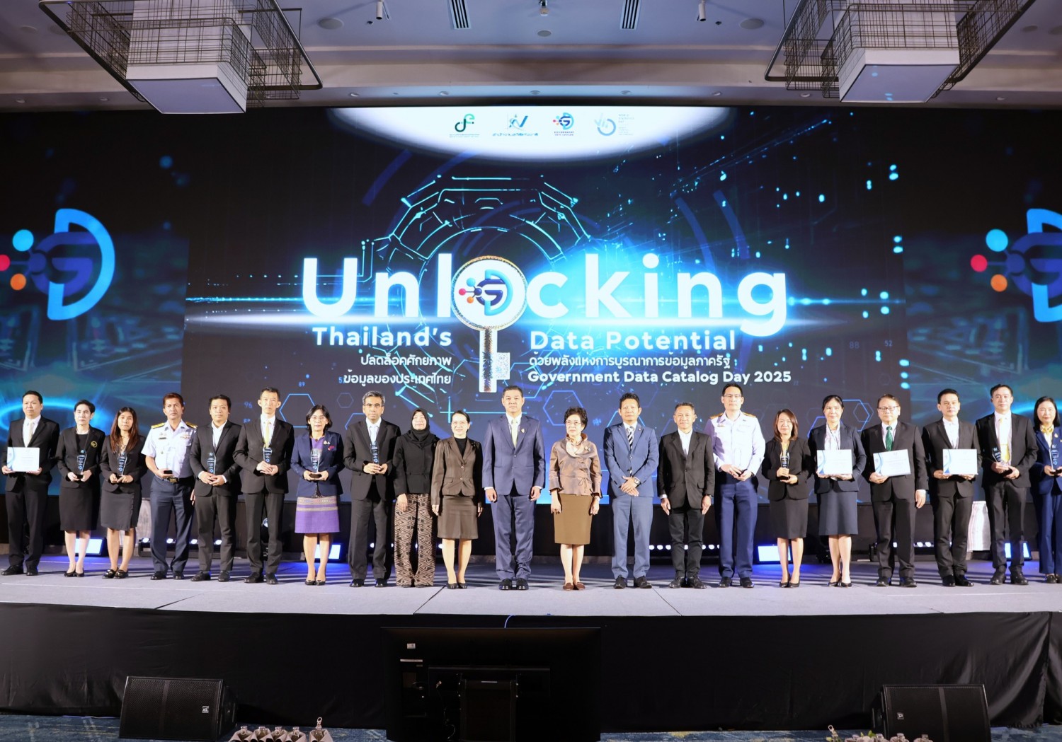 วันจันทร์ที่ 20 ตุลาคม พ.ศ. 2568 สำนักงานสถิติแห่งชาติ กระทรวงดิจิทัลเพื่อเศรษฐกิจและสังคม จัดการประชุมสัมมนา “Government Data Catalog Day 2025: Unlocking Thailand’s Data Potential ปลดล็อคศักยภาพข้อมูลของประเทศไทย ด้วยพลังแห่งการบูรณาการข้อมูลภาครัฐ ผ่านระบบบัญชีข้อมูลภาครัฐ (Government Data Catalog)” และมอบโล่รางวัล GD Catalog Award 2025 เพื่อมุ่งเน้นให้หน่วยงานภาครัฐสามารถจัดทำและบูรณาการบัญชีข้อมูลอย่างมีประสิทธิภาพ รวมถึงการประชา สัมพันธ์ และสร้างความตระหนักรู้ถึงความสำคัญของบัญชีข้อมูลภาครัฐ ณ โรงแรมโนโวเทล ฟิวเจอร์พาร์ครังสิต จังหวัดปทุมธานี โดยมี นายเอกพงษ์ หริ่มเจริญ ผู้อำนวยการสำนักงานสถิติแห่งชาติ ผู้บริหารกระทรวงดีอีเอสและสำนักงานสถิติแห่งชาติ วิทยากร ผู้ทรงคุณวุฒิและผู้แทนหน่วยงานภาครัฐ สถาบันการศึกษา ภาคเอกชน และผู้ที่เกี่ยวข้องเข้าร่วมกิจกรรมเป็นจำนวนมาก