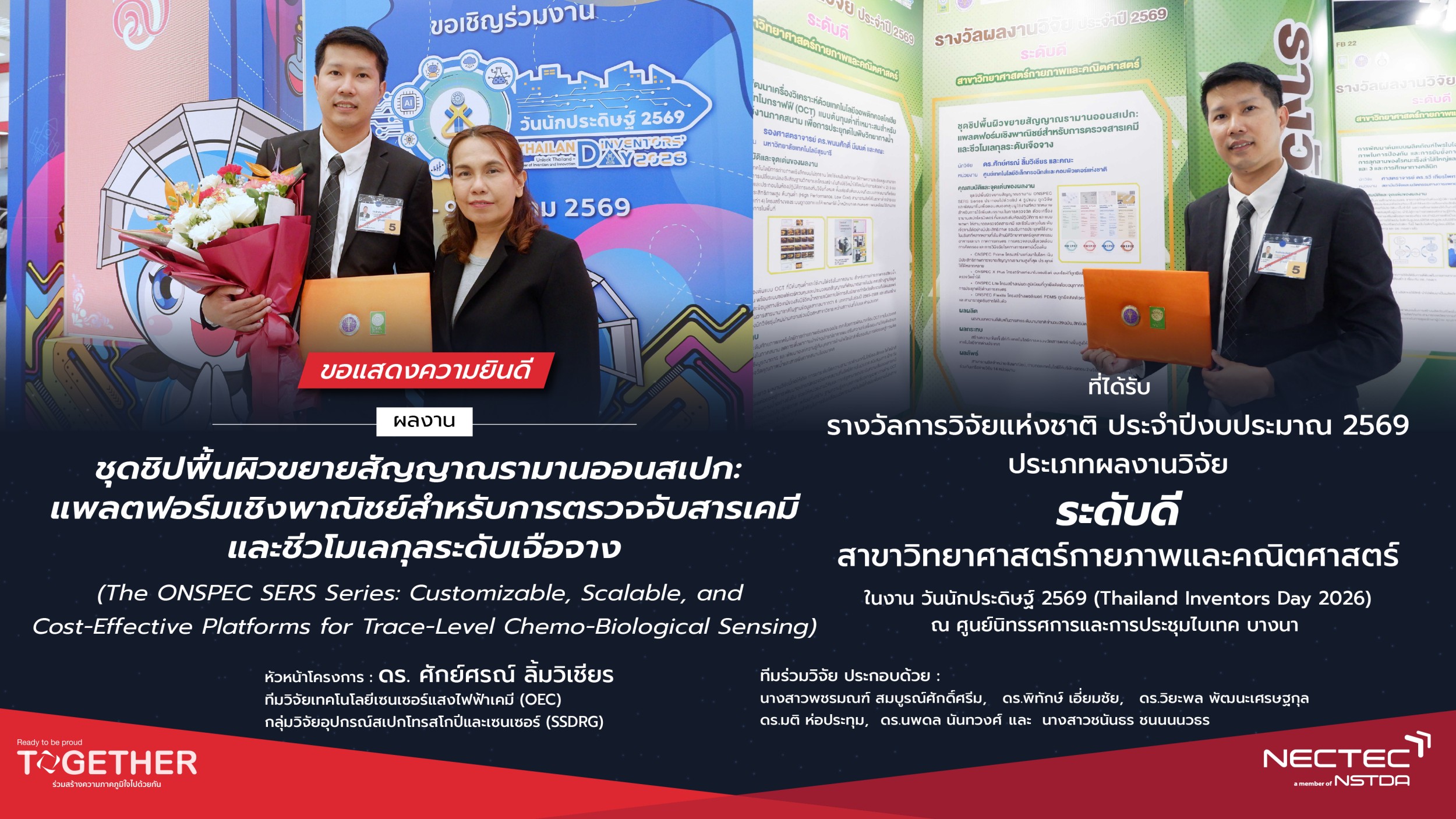 ผลงาน “ชุดชิปพื้นผิวขยายสัญญาณรามานออนสเปก: แพลตฟอร์มเชิงพาณิชย์สำหรับการตรวจจับสารเคมีและชีวโมเลกุลระดับเจือจาง” (The ONSPEC SERS Series: Customizable, Scalable, and Cost-Effective Platforms for Trace-Level Chemo-Biological Sensing)