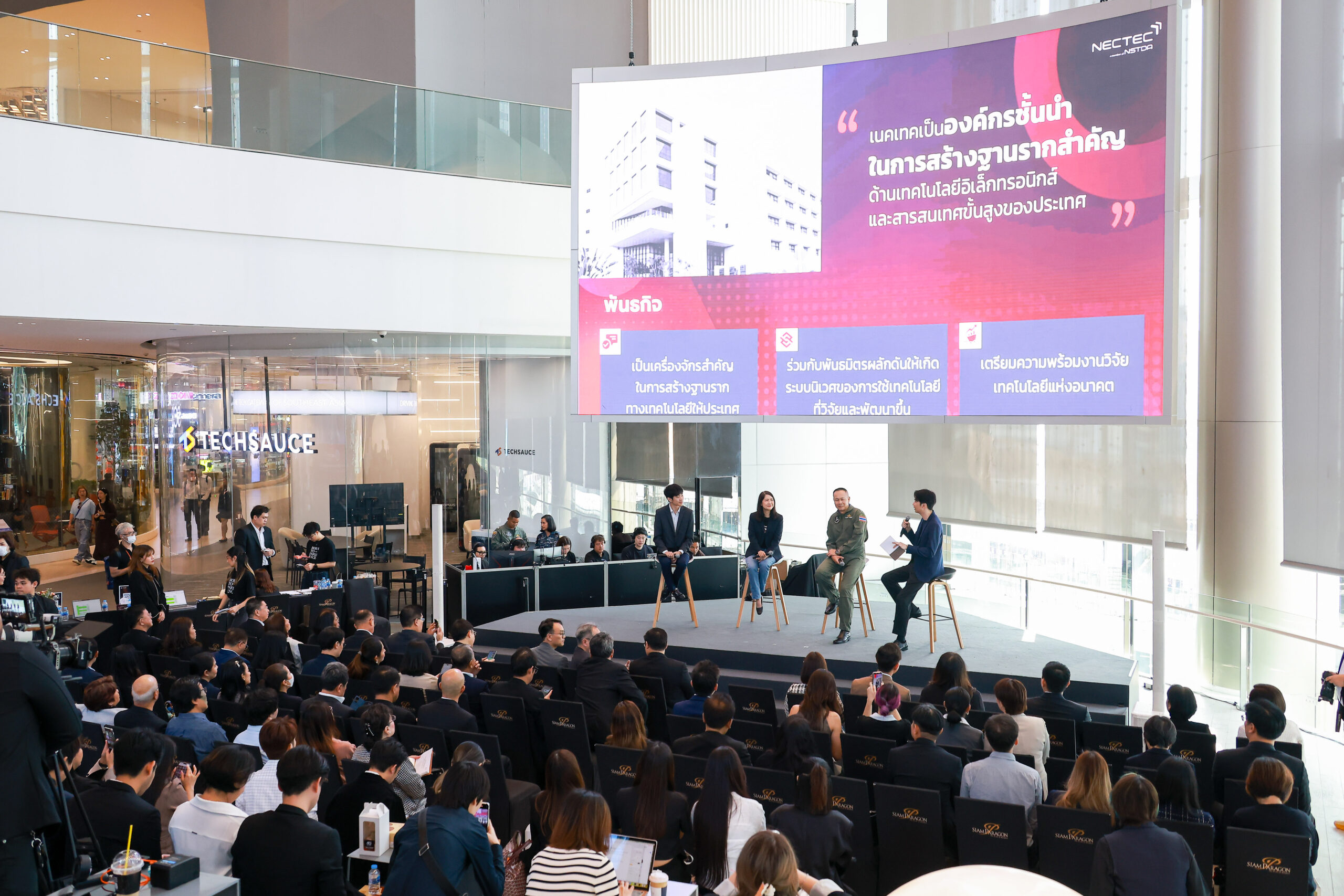 ภายในงานอัดแน่นด้วยการแลกเปลี่ยนมุมมองระดับประเทศ “Thailand at the Turning Point: ถึงเวลาของเทคโนโลยีไทย สู่ยุคใหม่ของประเทศ” ที่ดึงตัวจริงจากหลากหลายวงการมาร่วมถอดรหัสทางรอดของไทย ตั้งแต่มุมมองคนรุ่นใหม่สาย Tech Creator แถวหน้าอย่าง นพพล มาลีรัตน์มงคล YouTuber เจ้าของช่อง Extreme IT และ นวพล เชื่อมวราศาสตร์ Science Creator เจ้าของช่อง Say Science ไปจนถึงมุมมองความมั่นคงระดับชาติจากกองทัพอากาศ โดย พล.อ.อ. ประภาส สอนใจดี ผู้ช่วยผู้บัญชาการทหารอากาศ และดร. พนิตา พงษ์ไพบูลย์ รองผู้อำนวยการเนคเทค สวทช. ผู้ริเริ่ม platform IoT สัญชาติไทย มาร่วมกันหาคำตอบว่า “ทำไมเทคโนโลยีไทยถึงเวลาต้องสร้างเอง” ก่อนจะส่งไม้ต่อสู่ไฮไลต์สำคัญของการ Kick-off เปิดตัว Campaign “เนคเทค 40 ปี- Legacy & Beyond: วันนี้ที่สร้างไว้ เพื่อก้าวต่อไปที่ยั่งยืน”