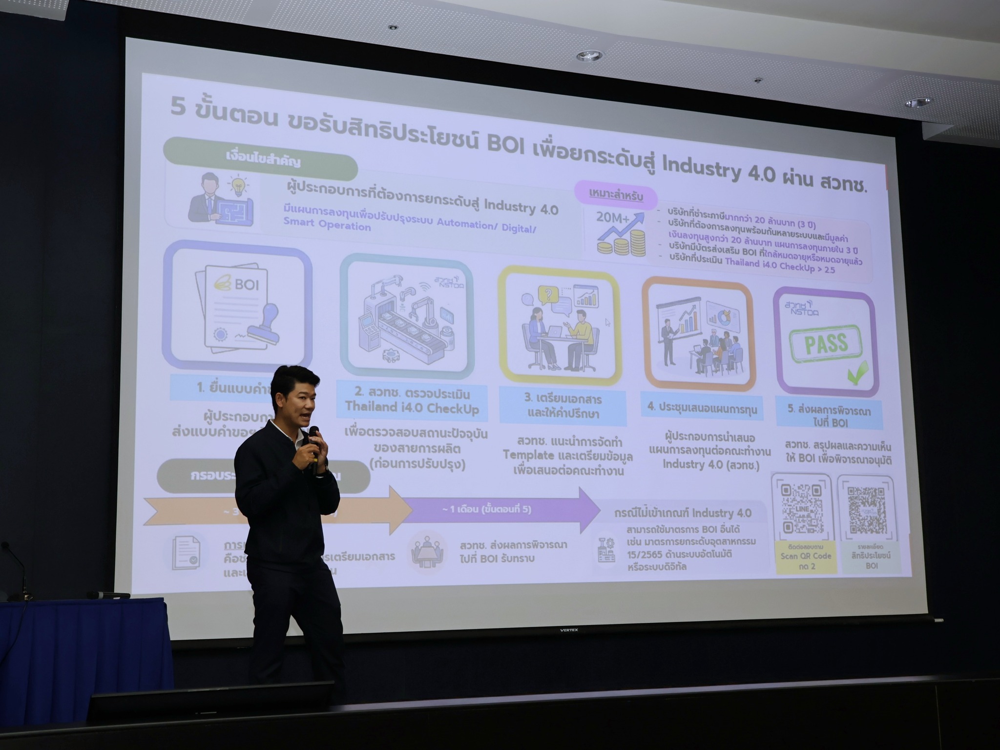 นอกจากนี้ ผู้เข้าร่วมงานยังได้รับฟังการบรรยายในหัวข้อสำคัญ อาทิ “สิทธิประโยชน์เพื่อการลงทุนสู่อุตสาหกรรม 4.0” โดย ดร.รวีภัทร์ ผุดผ่อง ผู้อำนวยการกลุ่มแพลตฟอร์มสนับสนุนอุตสาหกรรม 4.0 สวทช. ซึ่งให้ข้อมูลด้านกลไกสนับสนุนการลงทุนเพื่อช่วยลดความเสี่ยงในการนำเทคโนโลยีมาใช้งานจริง รวมถึงหัวข้อ “โรงงานจะเริ่มใช้ IoT อย่างไรดี?” โดย ดร.พรพรหม อธีตนันท์ ที่สะท้อนประสบการณ์และแนวทางการเริ่มต้นใช้งาน IoT ในภาคอุตสาหกรรมไทย
