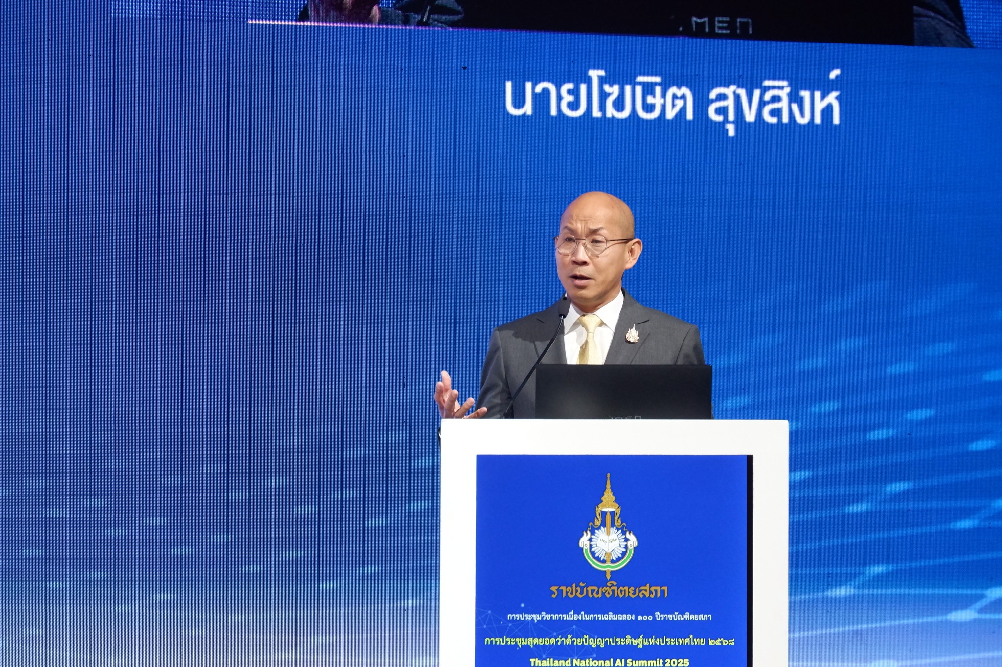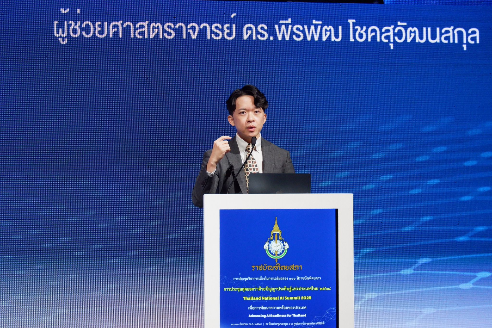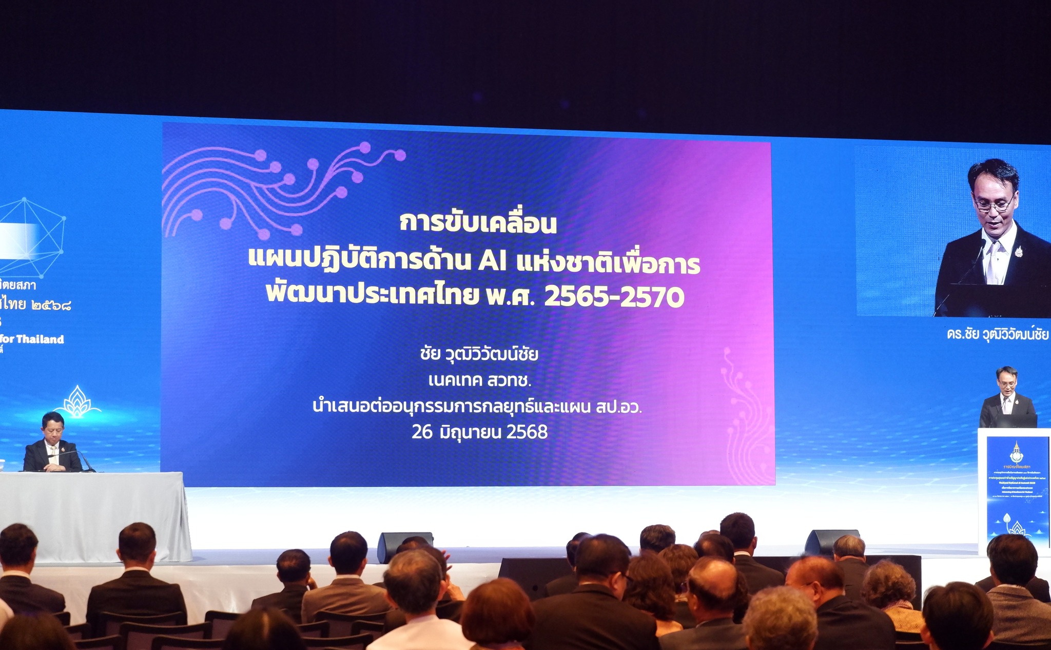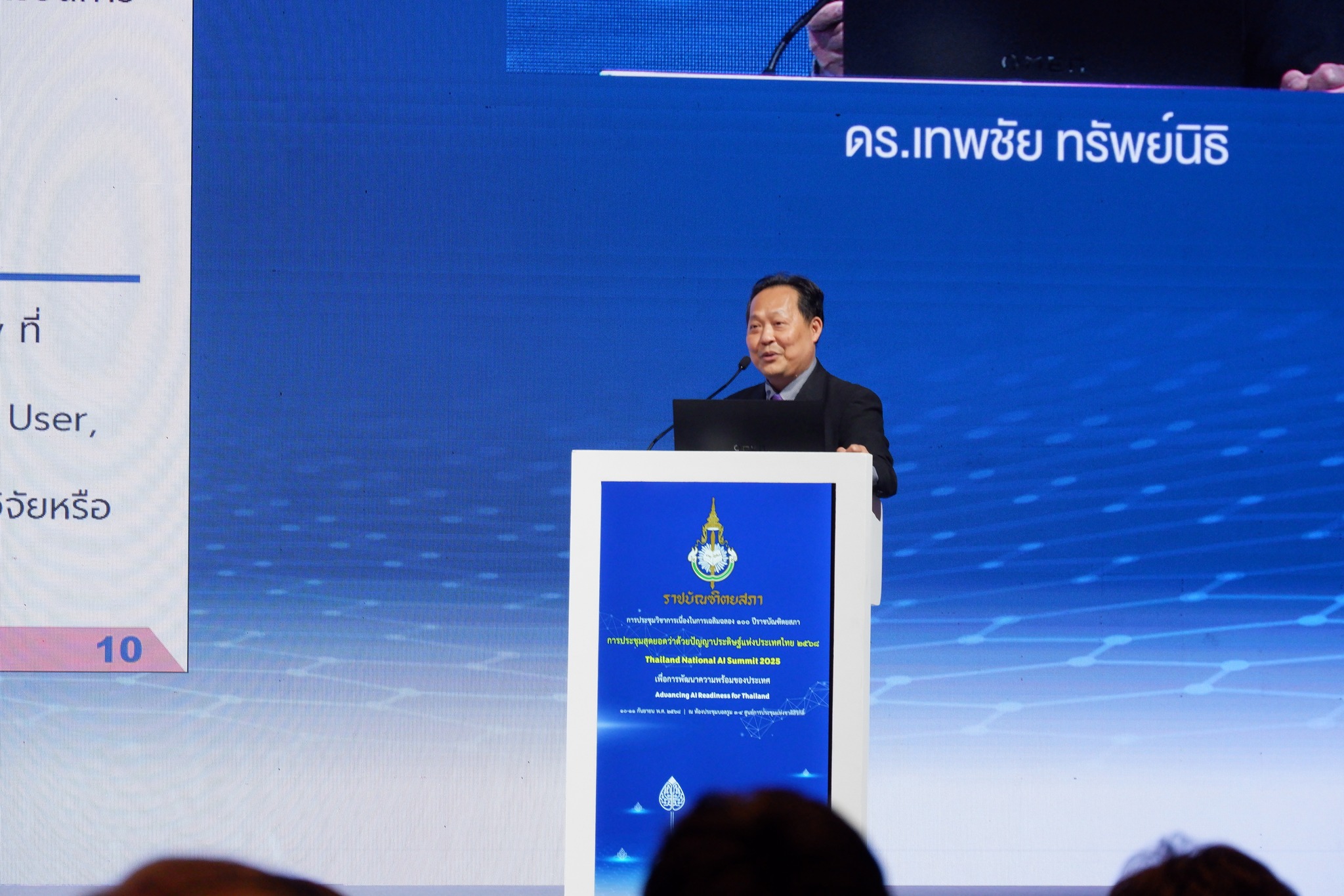 เมื่อวันที่ 10 กันยายน 2568 ณ ศูนย์การประชุมแห่งชาติสิริกิติ์ ดร.ชัย วุฒิวิวัฒน์ชัย ผู้อำนวยการ เนคเทค สวทช. ได้เข้าร่วมในการประชุมวิชาการเนื่องในการเฉลิมฉลอง 100 ปีราชบัณฑิตยสภา การประชุมสุดยอดว่าด้วยปัญญาประดิษฐ์แห่งประเทศไทย 2568 เพื่อการพัฒนาความพร้อมด้านปัญญาประดิษฐ์สำหรับประเทศไทย (Thailand National AI Summit 2025: Advancing AI Readiness for Thailand) จัดขึ้นโดย ราชบัณฑิตยสภา ร่วมกับหน่วยงานพันธมิตร ที่ได้รวบรวมผู้ทรงคุณวุฒิ ผู้กำหนดนโยบาย นักวิชาการ และผู้นำภาคอุตสาหกรรม ร่วมหารือแลกเปลี่ยนองค์ความรู้เกี่ยวกับประเด็นในการเร่งพัฒนาขีดความสามารถด้านปัญญาประดิษฐ์ (AI) ของประเทศไทย กับภูมิทัศน์ AI ระดับโลกที่กำลังพัฒนาอย่างรวดเร็ว เพื่อเตรียมความพร้อมเผชิญความท้าทาย และการเปลี่ยนแปลงที่ AI จะมีผลกระทบต่ออนาคตของประเทศไทยในมิติต่างๆ