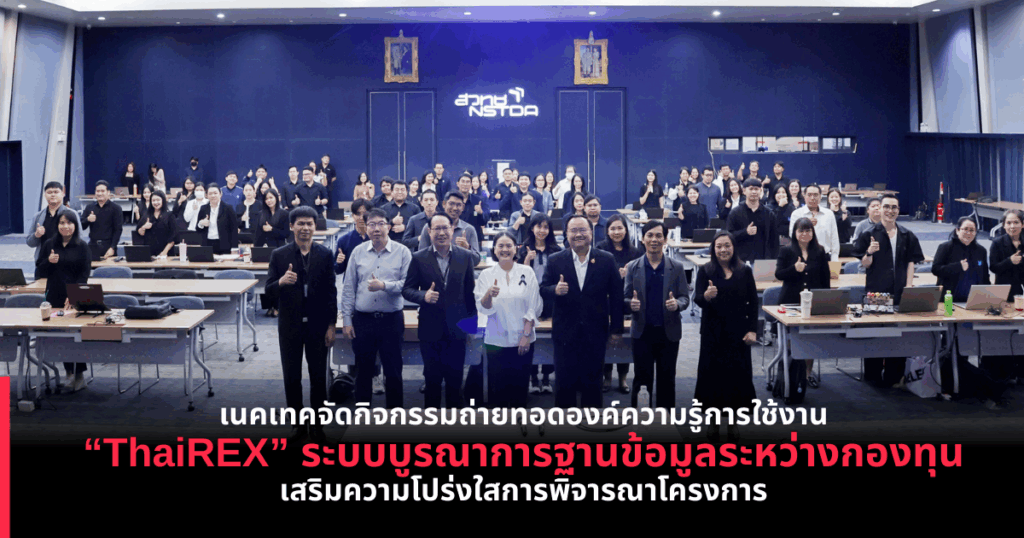 ศูนย์เทคโนโลยีอิเล็กทรอนิกส์และคอมพิวเตอร์แห่งชาติ (เนคเทค สวทช.) จัดกิจกรรมอบรมเชิงปฏิบัติการ “การใช้งานระบบบูรณาการฐานข้อมูลระหว่างกองทุน” ในวันที่ 22 ธันวาคม 2568 ณ ห้อง SD-601 อาคารสราญวิทย์ อุทยานวิทยาศาสตร์ประเทศไทย จังหวัดปทุมธานี มีผู้เข้าร่วมอบรมจากหน่วยงานภาครัฐและกองทุนที่เกี่ยวข้องรวมกว่า 80 ท่าน โดยมี คุณวรกัญญา บัวชุม ผู้อำนวยการส่วนกองทุนวิจัยและพัฒนากิจการกระจายเสียง กิจการโทรทัศน์และกิจการโทรคมนาคมเพื่อประโยชน์สาธารณะ ให้เกียรติเป็นประธานในการจัดอบรม