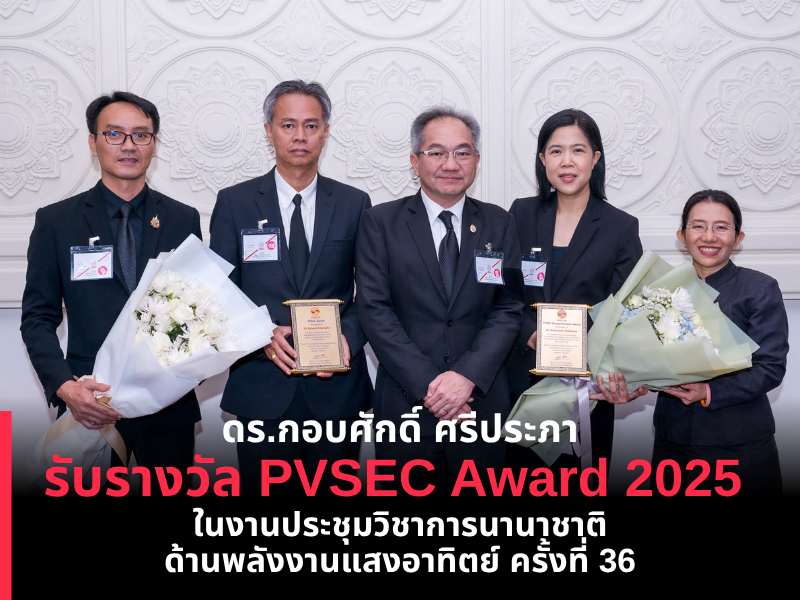 ดร.กอบศักดิ์ ศรีประภา รับรางวัล PVSEC Award 2025 ในงานประชุมวิชาการนานาชาติด้านพลังงานแสงอาทิตย์ ครั้งที่ 36