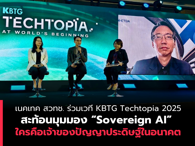 เนคเทค สวทช. ร่วมเวที KBTG Techtopia 2025 สะท้อนมุมมอง “Sovereign AI” ใครคือเจ้าของปัญญาประดิษฐ์ในอนาคต อธิปไตยทาง AI” ที่ประเทศไทยไม่สามารถพึ่งพา AI จากต่างชาติทั้งหมดได้ จึงจำเป็นต้องสร้าง “ทางเลือก” และ “ความสามารถในการควบคุม” บางส่วนขึ้นมาเอง