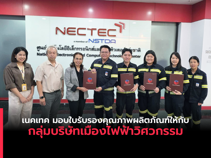 เนคเทคมอบใบรับรองคุณภาพผลิตภัณฑ์ให้กับกลุ่มบริษัทเมืองไฟฟ้าวิศวกรรม กลุ่มบริษัทเมืองไฟฟ้าเมืองวิศวกรรมรับใบรับรองคุณภาพผลิตภัณฑ์ ตามมาตรฐาน NFPA 25