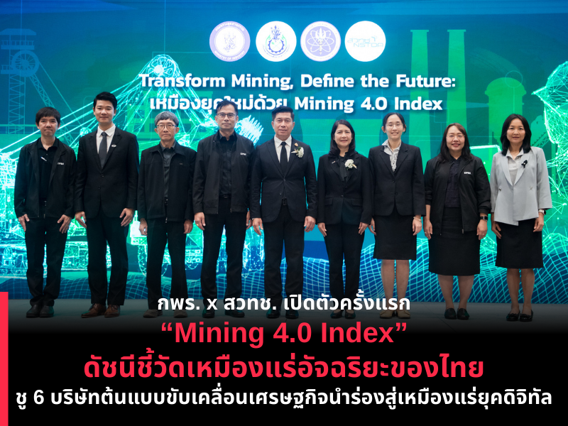 กพร. x สวทช. เปิดตัวครั้งแรก “Mining 4.0 Index” ดัชนีชี้วัดเหมืองแร่อัจฉริยะของไทย ชู 6 บริษัทต้นแบบขับเคลื่อนเศรษฐกิจนำร่องสู่เหมืองแร่ยุคดิจิทัล