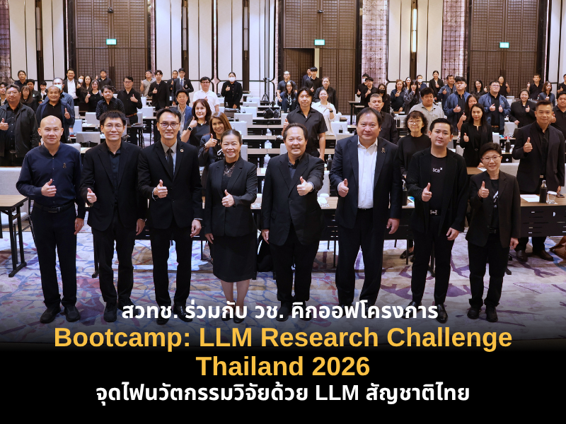 เนคเทค สวทช. ร่วมกับ วช. คิกออฟโครงการ Bootcamp: LLM Research Challenge Thailand 2026 จุดไฟนวัตกรรมวิจัยด้วย LLM สัญชาติไทย มุ่งสร้างเครือข่ายความร่วมมือและยกระดับทักษะบุคลากรด้าน AI และ Big Data ให้สามารถนำเทคโนโลยีไปประยุกต์ใช้จริงในหน่วยงาน
