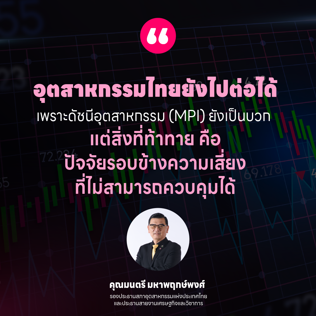 แม้นสถานการณ์ดังกล่าวเป็นแบบนี้แต่ดัชนีอุตสาหกรรม(MPI) ยังเป็นบวก สิ่งที่ท้าทายคือปัจจัยรอบข้างที่เป็นความเสี่ยงที่ไม่สามารถควบคุมได้