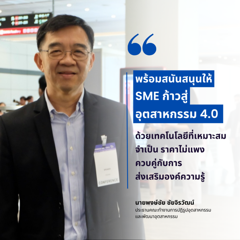 นายพงษ์ชัย กล่าวเสริมว่า สิ่งสำคัญ คือ การสนันสนุนให้ SME ซึ่งเป็นกลุ่มอตสาหกรรมส่วนใหญ่ของประเทศพัฒนา พร้อมก้าวสู่อุตสาหกรรม 4.0 ด้วยเทคโนโลยีที่เหมาะสม จำเป็น ในราคาไม่แพง นอกจากนี้การส่งเสริมเรื่ององค์ความรู้ก็เป็นสิ่งที่ควบคู่ไปด้วย