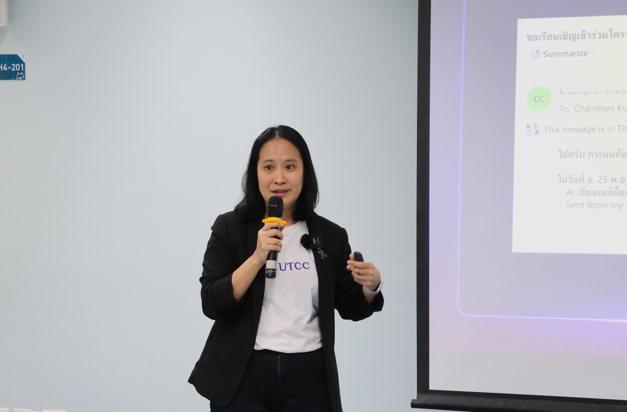 ตลอด 2 วันของกิจกรรม ผู้เข้าร่วมการอบรมได้เรียนรู้ทั้งแนวคิดเชิงนโยบายจากผู้บริหารมหาวิทยาลัย ที่สะท้อนให้เห็นถึงความสำคัญของ AI ที่ไม่ได้เป็นเพียงเครื่องมือทางเทคโนโลยี แต่คือกลไกเชิงยุทธศาสตร์ที่กำหนดทิศทางการพัฒนา โดยเฉพาะในบริบทของมหาวิทยาลัย ซึ่งมีบทบาททั้งด้านนโยบาย การบริหาร การพัฒนากำลังคน และอีกในหลากหลายมิติที่ AI จะมาเกี่ยวข้อง ในการบรรยายพิเศษหัวข้อ “Transforming Higher Education with AI and Emerging Technologies Building Future-Ready Universities” โดย ผู้ช่วยศาสตราจารย์ ดร.ชัชชัย หวังวิวัฒนา รองอธิการบดี ฝ่ายเทคโนโลยีสารสนเทศ มหาวิทยาลัยหอการค้าไทย