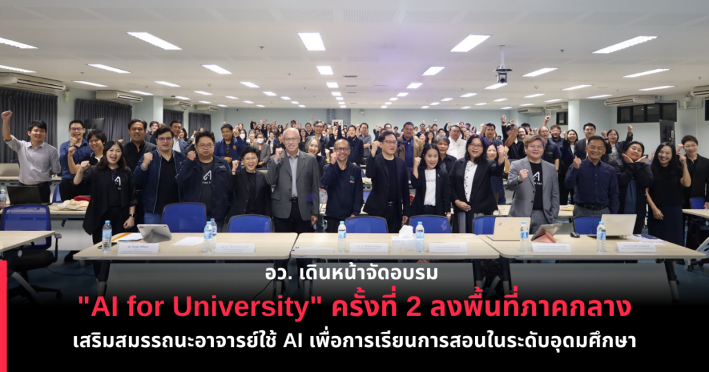 กระทรวงการอุดมศึกษา วิทยาศาสตร์ วิจัยและนวัตกรรม (อว.) เดินหน้าขับเคลื่อนนโยบาย AI for University อย่างต่อเนื่อง จัดการอบรมเชิงปฏิบัติการหัวข้อ “การประยุกต์ใช้ AI ในการเรียนการสอนระดับอุดมศึกษา” ครั้งที่ 2 เมื่อวันที่ 20–21 ธันวาคม 2568 ณ อาคารศูนย์เรียนรวม 4 มหาวิทยาลัยเกษตรศาสตร์ วิทยาเขตกำแพงแสน จังหวัดนครปฐม โดยมีผู้บริหาร คณะอาจารย์ระดับอุดมศึกษา ในพื้นที่ภาคกลาง จำนวน 137 คน