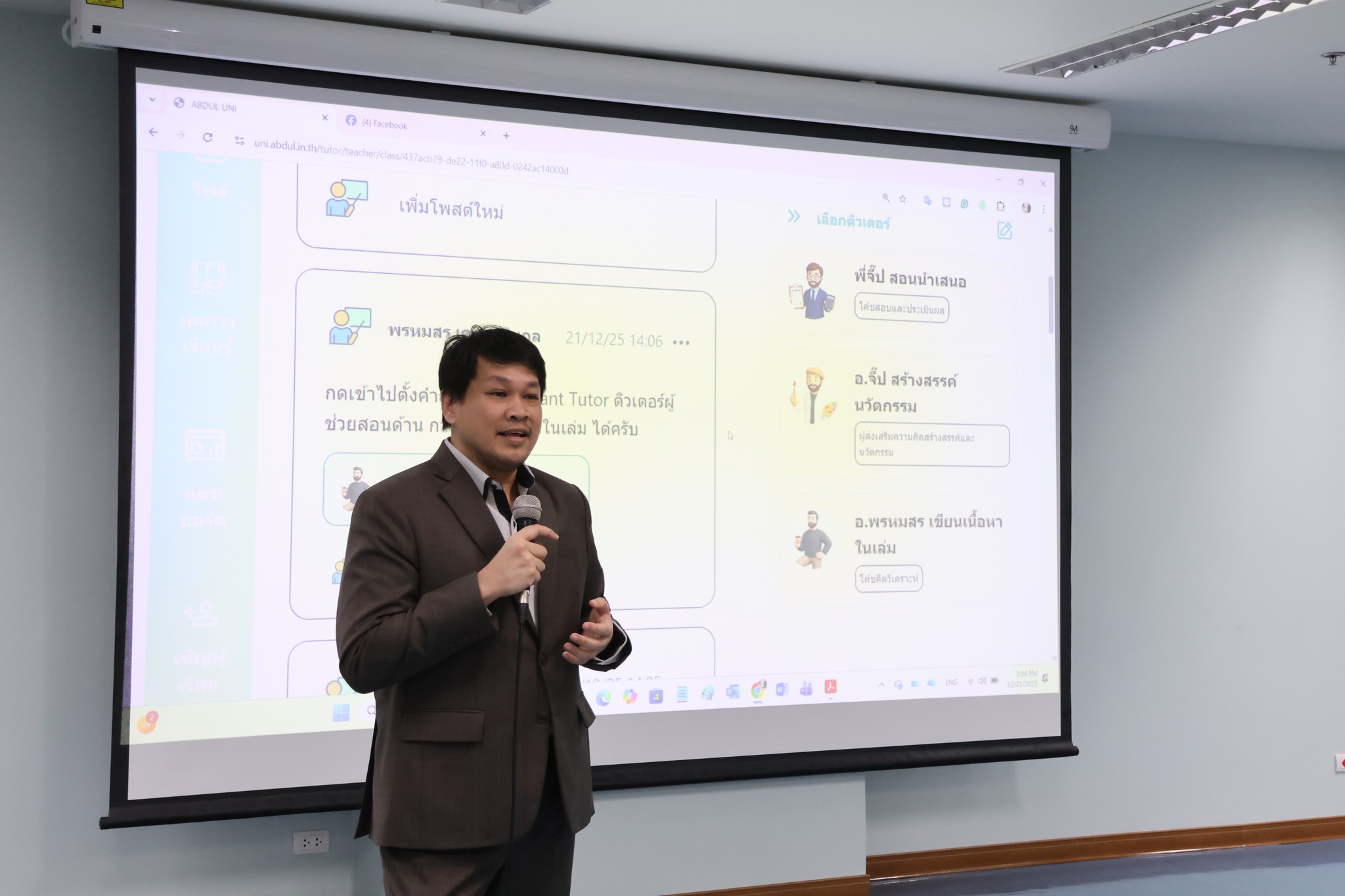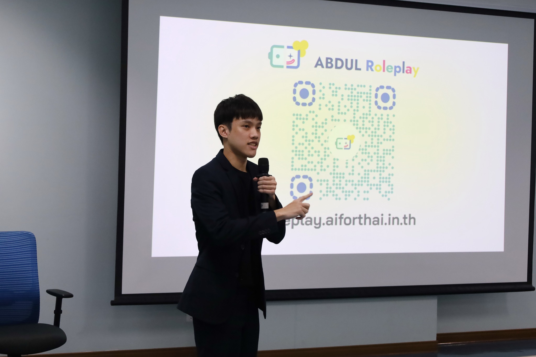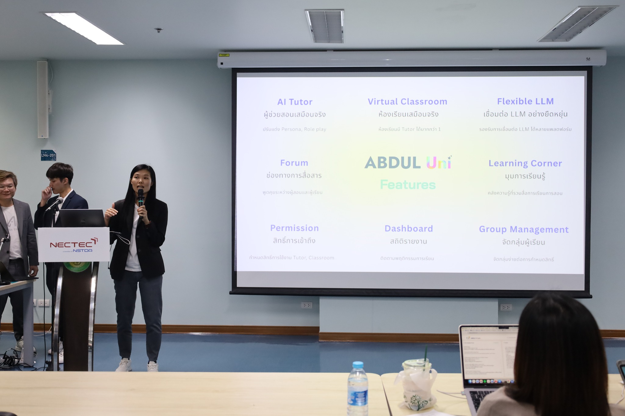 ปิดท้ายด้วยการนำเสนอต้นแบบห้องเรียน (classroom) ที่สร้างขึ้นด้วย Abdul UNI Platform จากตัวแทนอาจารย์ผู้เข้าร่วมอบรม ที่ได้มานำเสนอตัวอย่างการออกแบบ AI Tutor เข้ามาช่วยตอบโจทย์ในรายวิชา ดูแลผู้เรียนเป็นรายบุคคล พร้อมทั้งจัดการห้องเรียนแบบครบวงจร