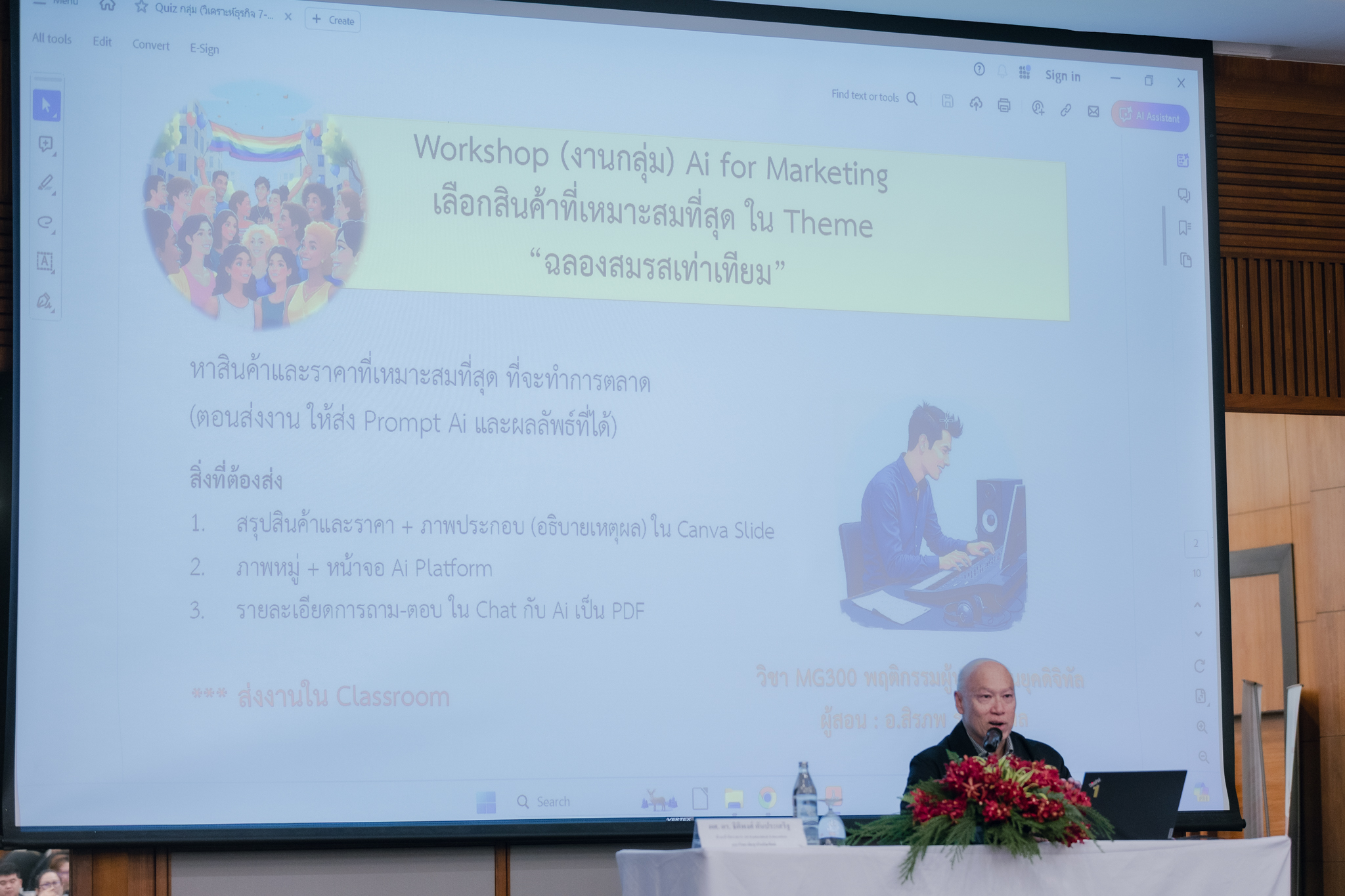 - การบรรยายในหัวข้อ “AI Embedded Education” แนวคิด/ แนวทางการเรียนการสอนยุคปัจจุบัน (Active Learning) และข้อควรระวังในการใช้ปัญญาประดิษฐ์ในการเรียนการสอน