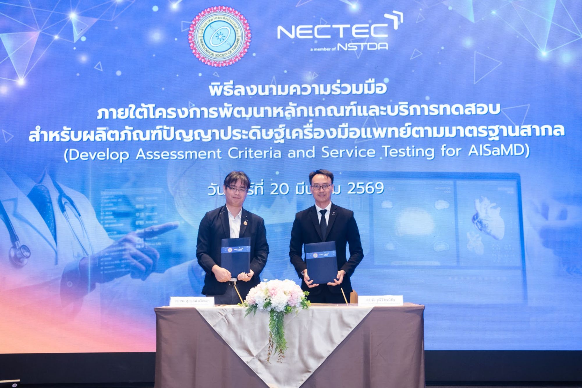 เดินหน้า AISaMD ปี 2 พื่อมุ่งเน้นกระดับผู้ประกอบการเทคโนโลยีปัญญาประดิษฐ์เครื่องมือแพทย์ไทยสู่มาตรฐานในระดับสากล และการทำ MOU 2 ฝ่าย (รังสีวิทยาสมาคมฯ (รสท.)NECTEC):  เน้นการดึงผู้เชี่ยวชาญด้านรังสีวิทยามาทำงานร่วมกับห้องปฏิบัติการ เพื่อกำหนดมาตรฐานการ “แปลผล” AI ให้มีความแม่นยำสูงสุดในทางคลินิก
