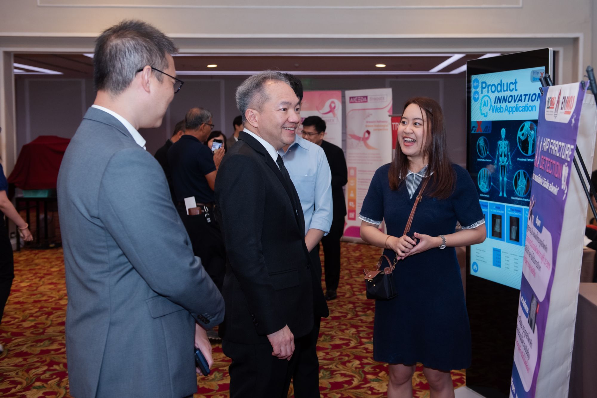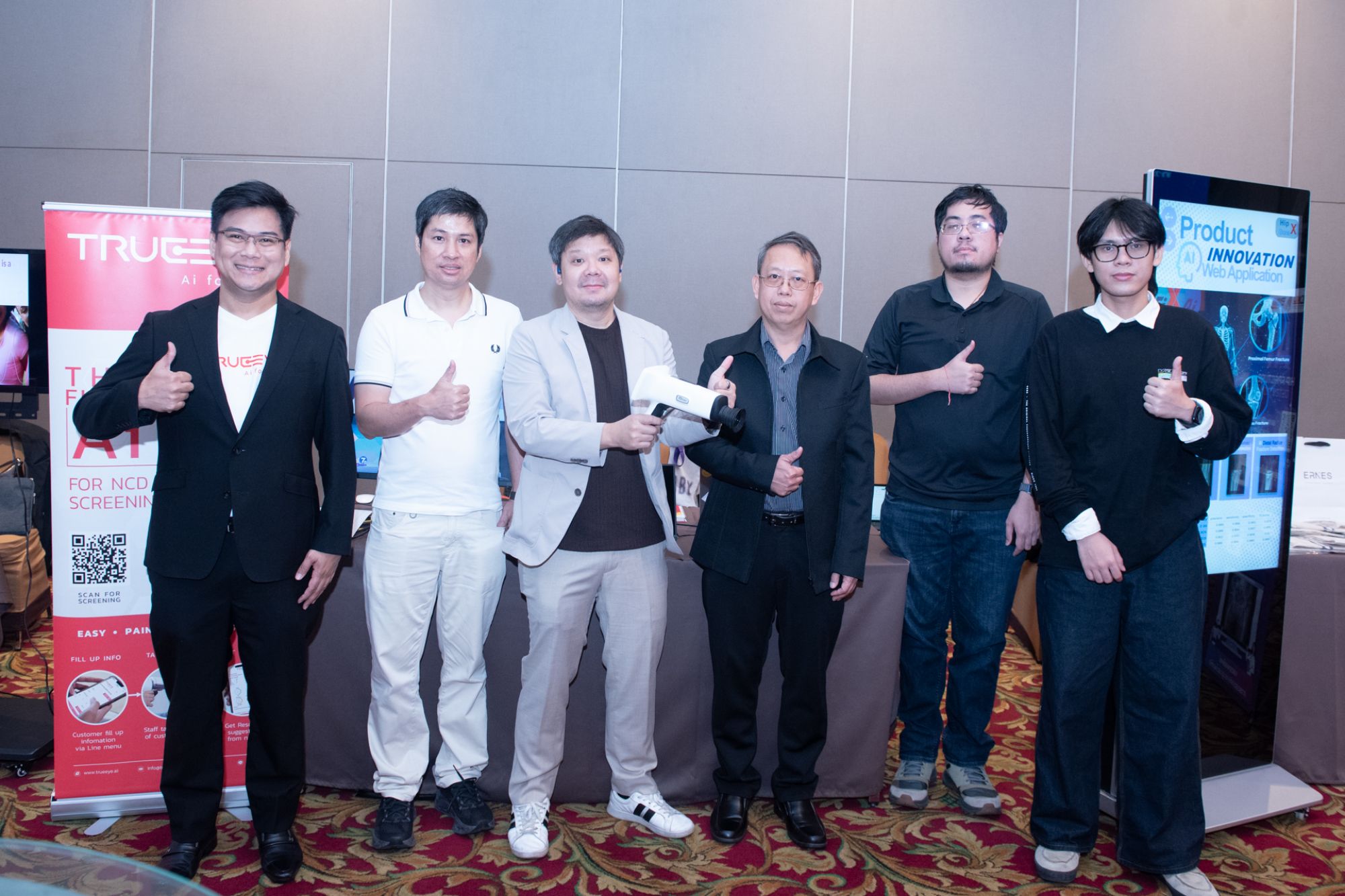 ทั้งนี้ภายในงานมีการจัดแสดงผลงาน 5 ผลิตภัณฑ์ AI เครื่องมือแพทย์ที่ผ่านการทดสอบตามมาตรฐานสากลและพร้อมก้าวสู่การขึ้นทะเบียนเครื่องมือแพทย์ ได้แก่