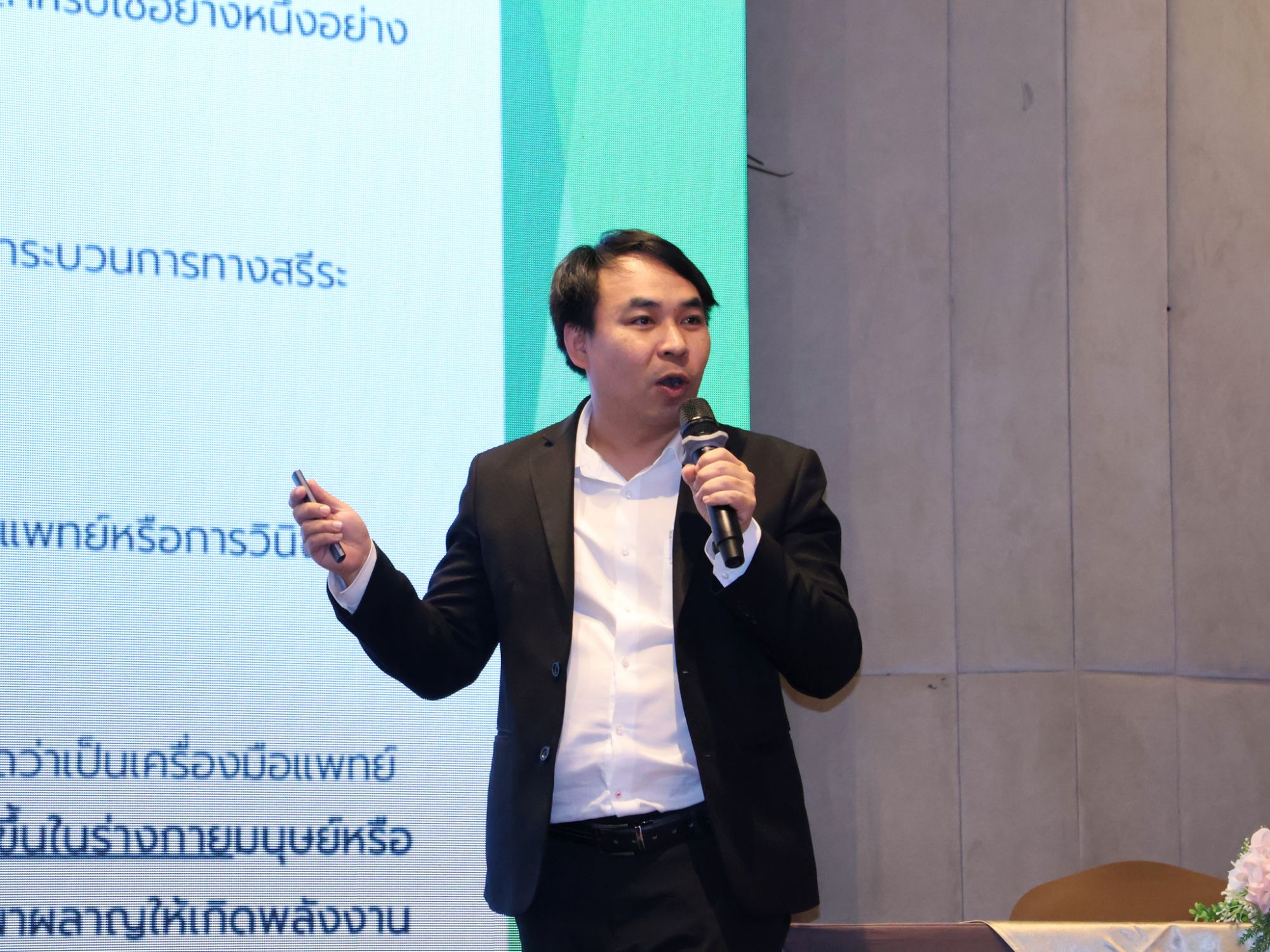 โดยงานในวันนี้ได้รับเกียรติจาก นพ.สุวิทย์ วิบุลผลประเสริฐ ประธานคณะอนุกรรมการส่งเสริมเป้าหมายสำคัญตามยุทธศาสตร์ วิทยาศาสตร์ วิจัยและนวัตกรรมด้านเครื่องมือแพทย์ บริการทางการแพทย์และยา ร่วมบรรยายพิเศษในหัวข้อ “ขับเคลื่อนนวัตกรรมผลิตภัณฑ์ปัญญาประดิษฐ์เครื่องมือแพทย์ไทย มุ่งสู่เชิงพาณิชย์” โดยกล่าวว่า “วันนี้เป็นก้าวสำคัญของการพัฒนา AI Software as Medical Device (AISaMD) ความร่วมมือของทุกหน่วยงานจะช่วยสร้างความเชื่อมั่นด้านความปลอดภัย คุณภาพ และประสิทธิภาพ และร่วมกันขับเคลื่อนระบบนิเวศให้เป็นรูปธรรม ครอบคลุมตั้งแต่การเชื่อมโยงข้อมูล การทำงานร่วมกับภาคเอกชน มาตรฐานกฎหมาย ไปจนถึงประเด็นที่ต้องผลักดันอย่างจริงจัง เช่น จริยธรรม AI และการสนับสนุนเชิงนโยบายจากภาครัฐเพื่อรองรับต้นทุนพัฒนานวัตกรรม”