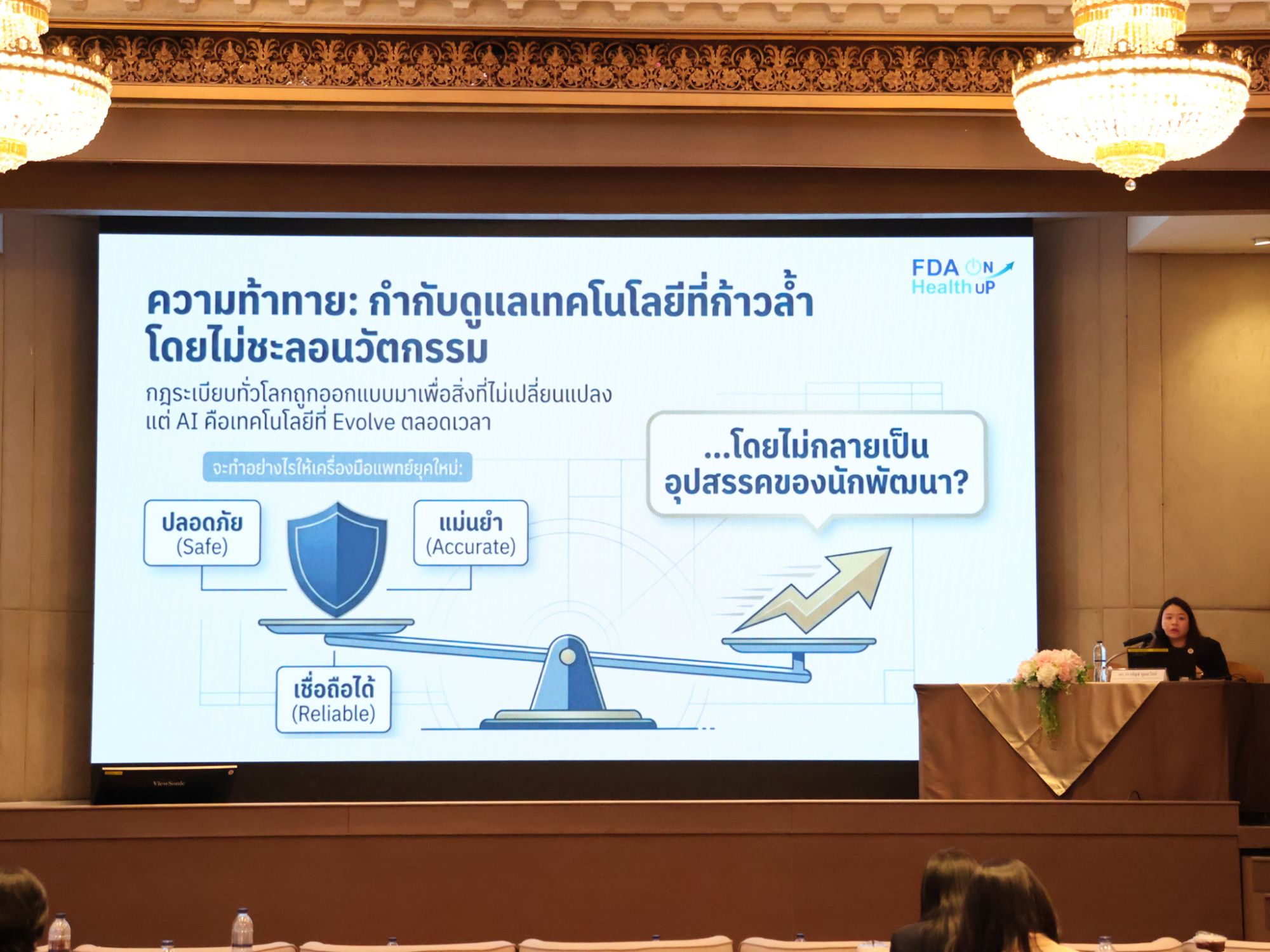 “อย. เชื่อมั่นว่าการเชื่อมโยงการทำงานแบบบูรณาการระหว่างหน่วยงานกำกับดูแล หน่วยงานวิจัย และหน่วยงานส่งเสริมธุรกิจ จะเป็นกลไกสำคัญที่ช่วยลดช่องว่างและร่นระยะเวลาในการผลักดันนวัตกรรมเครื่องมือแพทย์ของไทยให้ก้าวสู่มาตรฐานโลกได้อย่างยั่งยืน” ภญ.สุภัทรา กล่าว