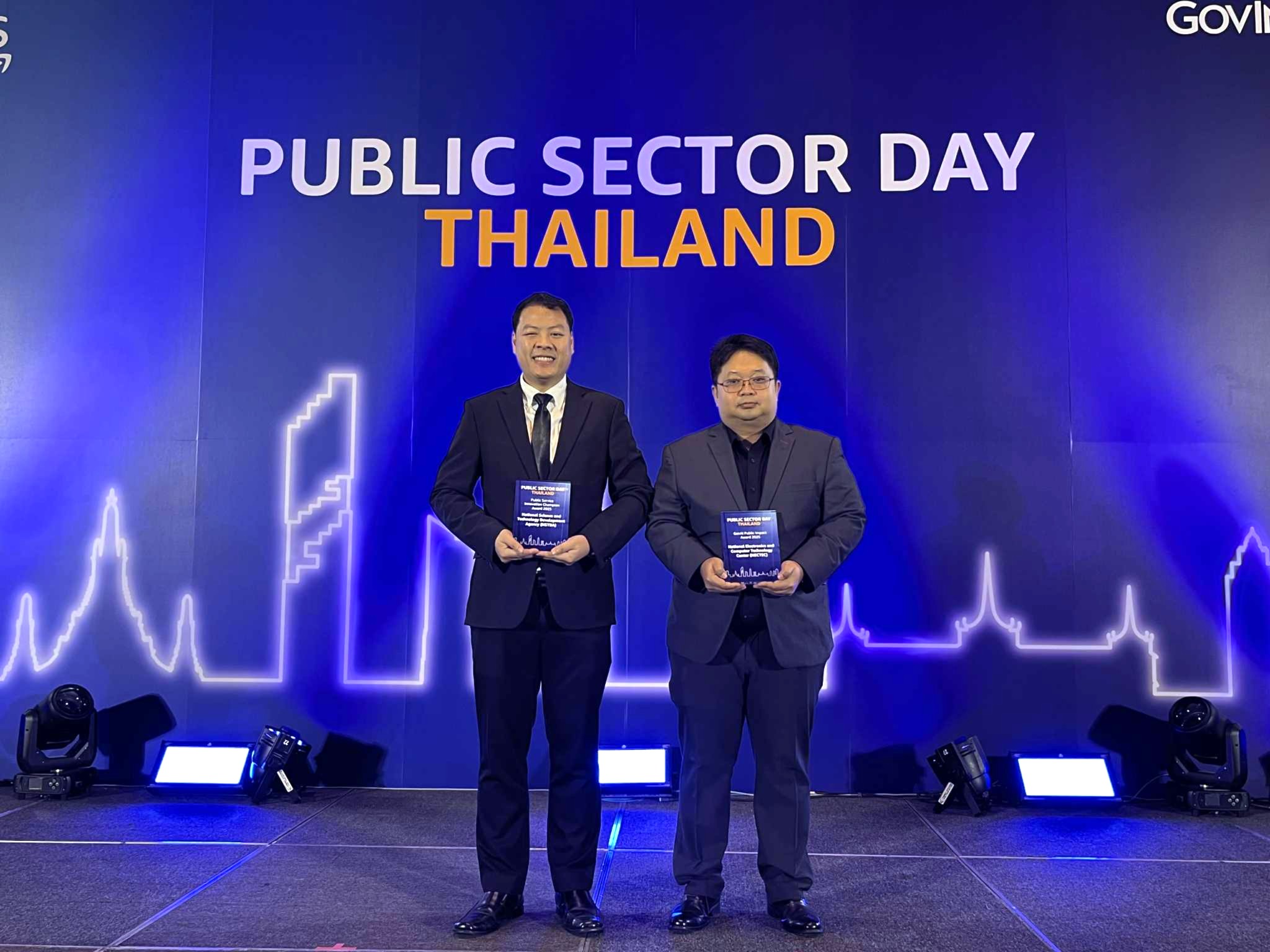 และภายในงานเดียวกันนี้ ดร.มนัสชัย คุณาเศรษฐ ผู้ช่วยผู้อำนวยการ สวทช. ได้ขึ้นรับรางวัลในสาขา “Public Service Innovation Champion” รางวัลแห่งนวัตกรรมบริการภาครัฐ แก่หน่วยงานผู้บุกเบิก สร้างสรรค์บริการรูปแบบใหม่ ตอบโจทย์ความต้องการของประเทศ ที่มอบให้กับผลงาน “โครงการ NSTDA Cloud” โดยเป็นโครงการทดแทนโครงสร้างพื้นฐานระบบเครื่องแม่ข่ายและระบบสารสนเทศระบบเดิม เพื่อรองรับการเติบโตในอนาคตให้ก้าวทันการเปลี่ยนแปลงเทคโนโลยี มีประสิทธิภาพสูง ปลอดภัย และยังเป็นจุดเริ่มต้นของ Research Cloud ในอนาคตอันใกล้อีกด้วย