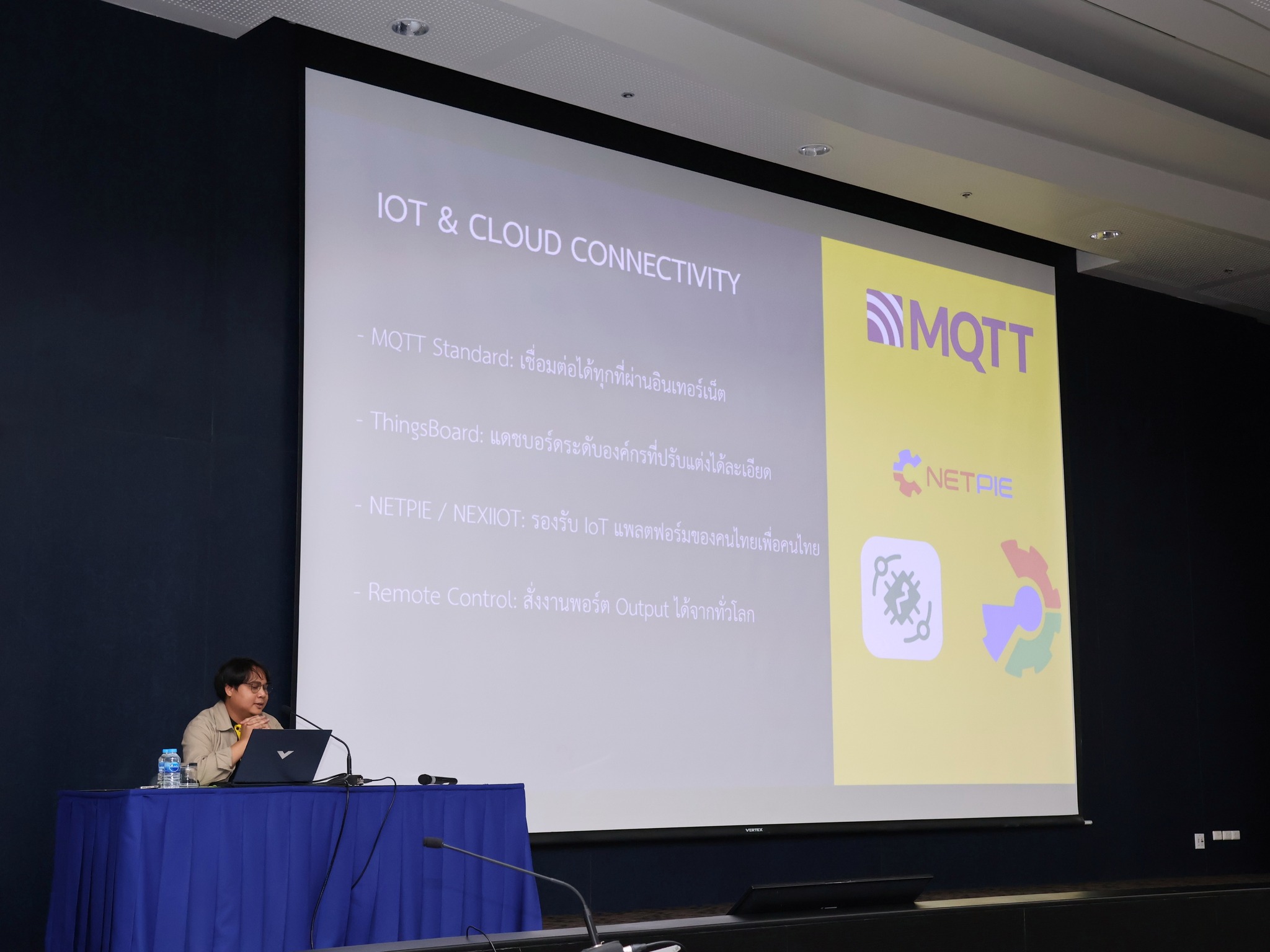 นอกจากนี้ ผู้เข้าร่วมงานยังได้รับฟังการบรรยายในหัวข้อสำคัญ อาทิ “สิทธิประโยชน์เพื่อการลงทุนสู่อุตสาหกรรม 4.0” โดย ดร.รวีภัทร์ ผุดผ่อง ผู้อำนวยการกลุ่มแพลตฟอร์มสนับสนุนอุตสาหกรรม 4.0 สวทช. ซึ่งให้ข้อมูลด้านกลไกสนับสนุนการลงทุนเพื่อช่วยลดความเสี่ยงในการนำเทคโนโลยีมาใช้งานจริง รวมถึงหัวข้อ “โรงงานจะเริ่มใช้ IoT อย่างไรดี?” โดย ดร.พรพรหม อธีตนันท์ ที่สะท้อนประสบการณ์และแนวทางการเริ่มต้นใช้งาน IoT ในภาคอุตสาหกรรมไทย