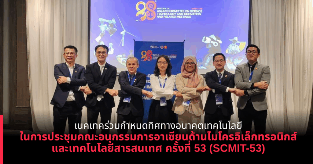 ดร.ชัย วุฒิวิวัฒน์ชัย ผู้อำนวยการศูนย์เทคโนโลยีอิเล็กทรอนิกส์และคอมพิวเตอร์แห่งชาติ (เนคเทค) สำนักงานพัฒนาวิทยาศาสตร์และเทคโนโลยีแห่งชาติ (สวทช.) เข้าร่วมการประชุมคณะอนุกรรมการอาเซียนด้านไมโครอิเล็กทรอนิกส์และเทคโนโลยีสารสนเทศ ครั้งที่ 53 (ASEAN Sub-Committee on Microelectronics and Information Technology : SCMIT-53) ซึ่งจัดขึ้นระหว่างวันที่ 20–21 ตุลาคม 2568 ณ โรงแรมจูบิลี่ พรีสทีจ ถนนรัชดาภิเษก กรุงเทพฯ