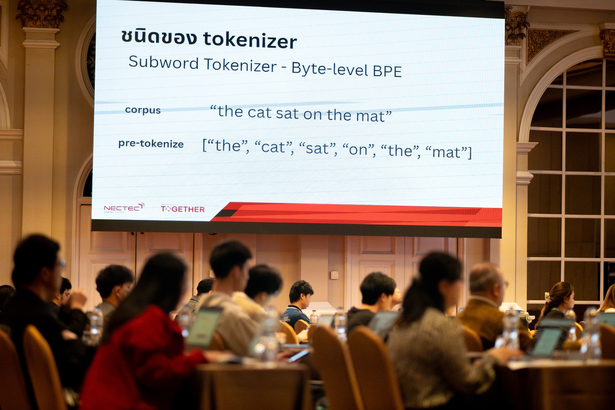 - Tokenizer & Dataset Structure การออกแบบโปรแกรมตัดคำให้เหมาะกับบริบทภาษา และโครงสร้างข้อมูลสำหรับการเทรน LLM