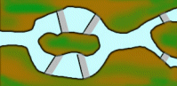 - ปัญหาที่ 2. สมมุติว่ามีสะพานข้ามแม่น้ำน้อยลง โดยสะพานมีดังรูป