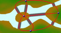 ออยเลอร์ เสนอวิธีการแก้ปัญหานี้โดยการแทนพื้นดิน แต่ละแห่งเป็นจุดซึ่งเรียกว่า จุดเชื่อมโยง (Vertices)