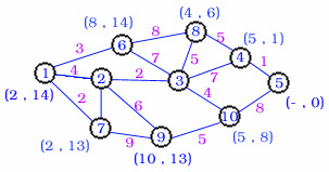 จุดปลายทางคือจุดต้นทางที่ปัญหากำหนด ซึ่งสามารภคำนวนหาระยะทางสั้นที่สุดได้ 14 มาจากเส้นทางโหนด 2 |