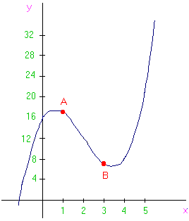 คำตอบ y ที่ได้ขึ้นอยู่กับค่า x เช่น ถ้าพิจารณาเฉพาะช่วง จาก x = 0 ถึง 3 จุด A จะเป็นจุดสูงสุดในช่วงนี้ และถ้าพิจารณาจาก x = 1 ถึง 5 จุด B คือค่า y ที่มีค่าต่ำสุด