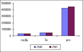 แสดงจำนวนสัตว์ที่เลี้ยงในประเทศไทยในปี 2540 - 2541