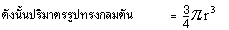 อาร์คีมีดีสได้แสดงให้เห็นว่า อัตราส่วนทางปริมาตรของรูปทรงกลมตันมีค่าเท่ากับ 2/3 ของรูปทรงกระบอก ที่มีส่วนสูงและเส้นผ่าศูนย์กลางของฐานเท่ากับเส้นผ่าศูนย์กลางของรูปทรงกลม จากหลักการนี้ทำให้ทราบวิธีการหาปริมาตรของรูปทรงกลม ปริมาณรูปทรงกระบอก = พื้นที่ฐาน x สูง ที่มา : รศ. ยืน ภู่วรวรรณ, สำนักบริการคอมพิวเตอร์ มหาวิทยาลัยเกษตรศาสตร์