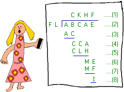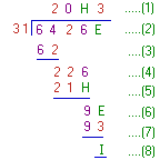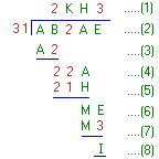 | (6) จากบรรทัดที่ 7 จะได้ M = 9 | ![]() (7) เมื่อ | ![]() (8) จากบรรทัดที่ 4, 5 และ 6 จะได้ H = 7