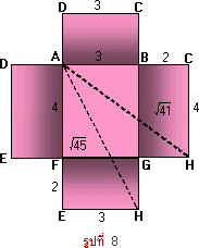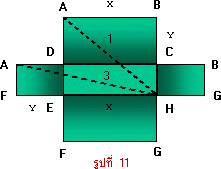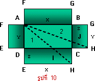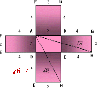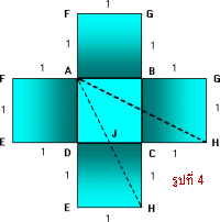 ถ้าตัดก้นกล่อง EFGH ออกและตัดกล่องตามขอบ AF, ED, CH และBG แล้วคลี่กล่องออกจะได้แผ่นที่คลี่แล้วเป็นดังรูปที่ 4