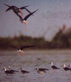 ชอบอยู่รวมกันเป็นฝูง เมืองไทยมีชนิดเดียวคือ นกตีนเทียน (Black Winged Stilts) |