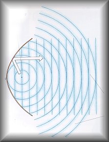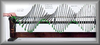 ทุกจุดที่กระทำสิ่งเดียวกันในจังหวะที่ต่างกันแบบจำลองนี้แสดงการเคลื่อนที่ของคลื่นโดยการใช้แผ่นกระดก แต่ละแผ่นเคลื่อนที่มันจะไปยืดสปริงและบิดแผ่นกระดกแผ่นถัดไปความเร็วของคลื่นขึ้นอยู่กับคุณสมบัติ ของแผ่นกระดกและสปริงเช่นเดียวกับ ความเร็วของคลื่นแม่เหล็กไฟฟ้า ที่ขึ้นกับคุณสมบัติทางไฟฟ้าและแม่ เหล็กของตัวกลาง |