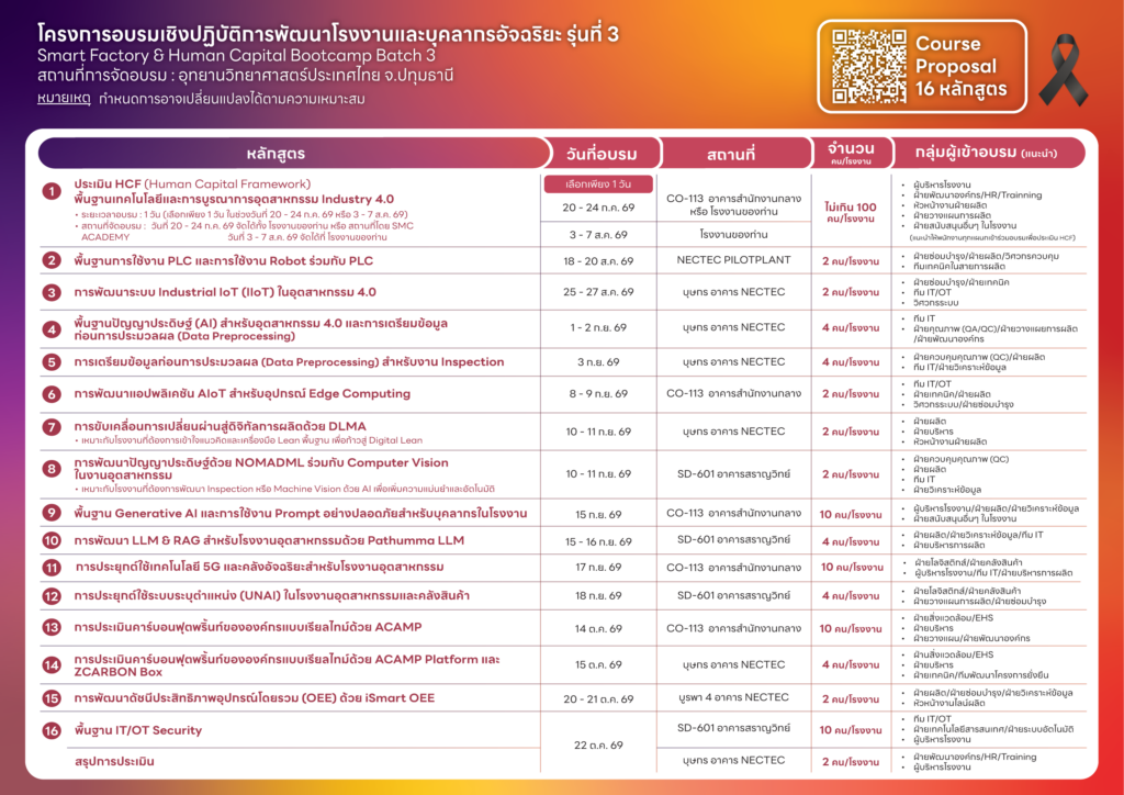 อบรม 16 หลักสูตร – กลุ่มหลักสูตรที่จะเตรียมความพร้อม เพื่อพัฒนาด้านเทคโนโลยีและทักษะบุคลากรให้พร้อมสู่ Industry 5.0